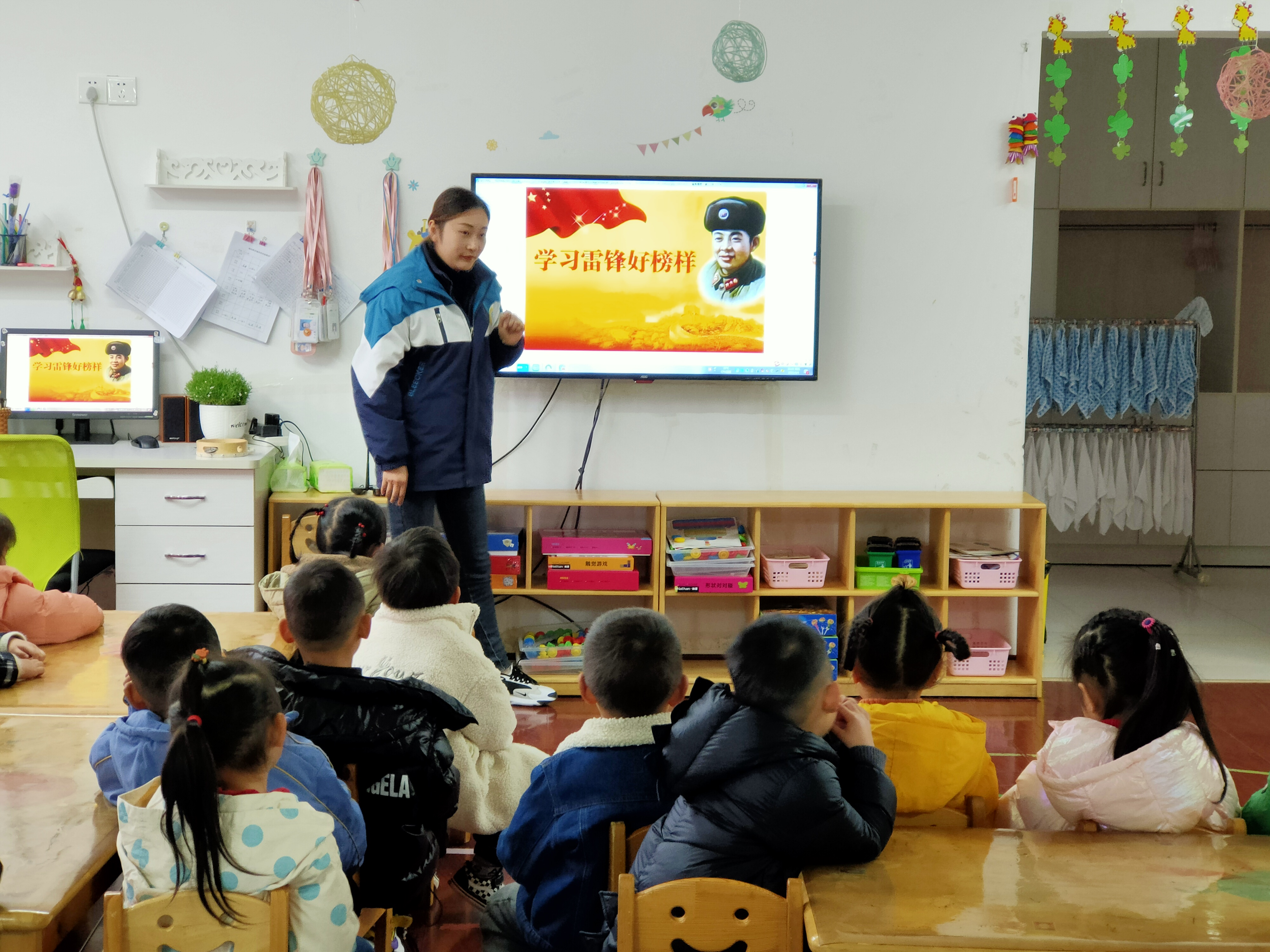 学习雷锋好榜样 在学雷锋日到来之际,学雷锋活动的春风又一次悄然吹拂。要问起“雷锋是谁?”对于现在的幼儿来说,确实很陌生。为了让孩子们更加深刻地认识雷锋、熟悉雷锋,并用实际行动学雷锋,弘扬助人为乐、勤俭节约等传统美德,3月5日下午,我班开展了“学雷锋日”主题教育活动。