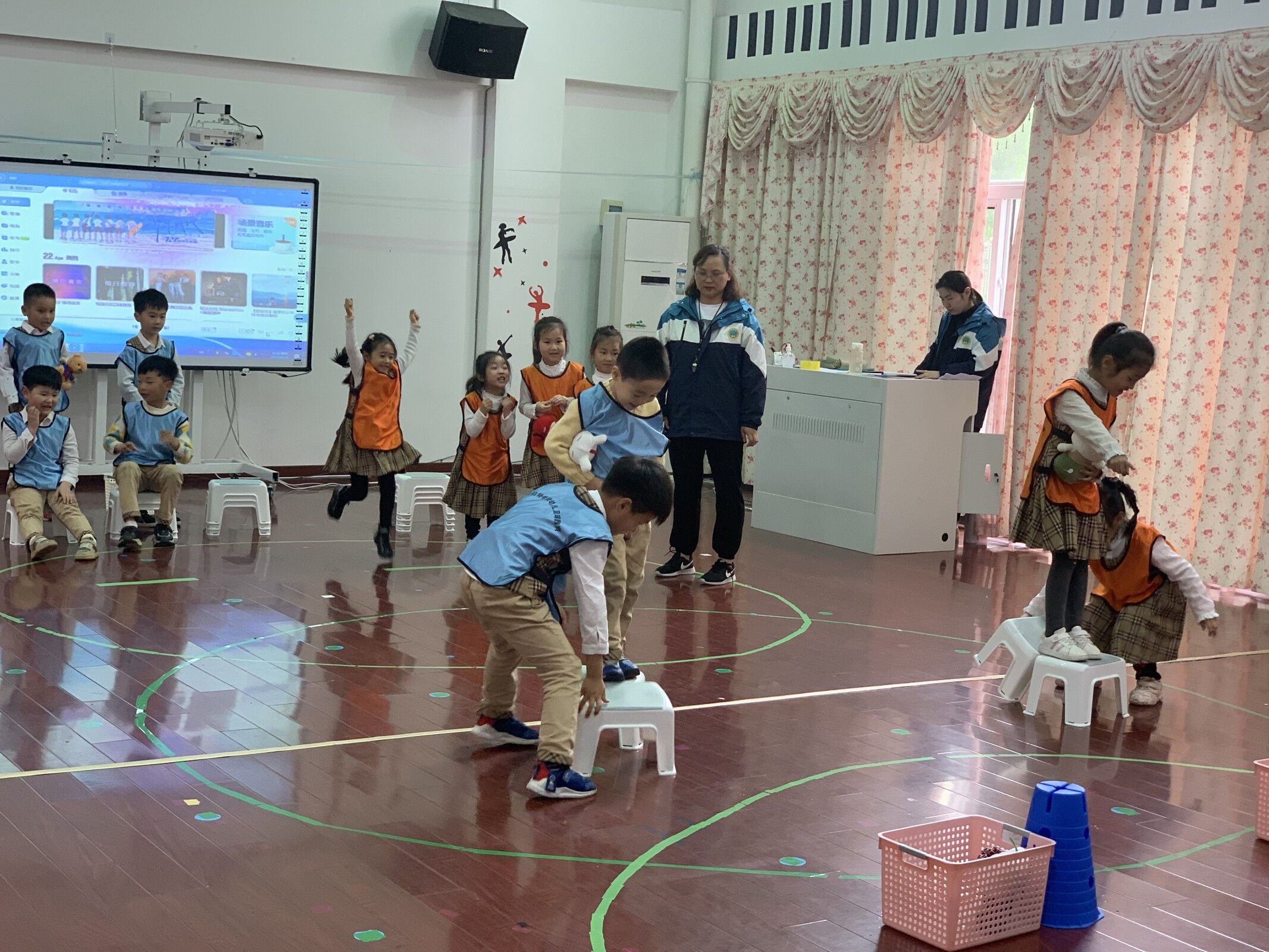 大班健康: 团结一心 活动目标 1、训练幼儿平衡能力,提高动作的灵活性及快速反应能力。 2、体验合作游戏的快乐,萌发团队意识,培养团队合作能力。 活动准备 活动过程 一、热身活动 二、游戏活动 情境导入:小朋友们知道汪汪队吗?莱德队长今天收到一个新的救援任务。一群小动物因为下大雨,被困在了森林里,大雨把它们回家的道路冲毁了,它们现在回不了家。莱德队长想让我们小朋友去帮忙,把小动物们安全的送回家,你们愿意吗? 1、游戏:送动物回家 (引导幼儿自由探索,尝试玩法,教师小结游戏玩法和规则) 游戏规则与玩法:小朋友2人一组,每组2个凳子。一人站在凳子上,抱着小动物,另外一人搭建道路,将第二把椅子搬到第一把凳子前面,依次循环,往前行至终点。通过游戏锻炼幼儿的平衡能力和反应能力,体验合作游戏的快乐,萌发初步的团队意识。 讨论:为什么有的小朋友完成的速度快? 教师小结,幼儿互换角色,再次练习。 2、游戏:团结一心 教师讲解游戏规则并示范游戏玩法,教师提醒幼儿注意保持身体平衡,注意移动位子的安全,提示第一名幼儿在放置凳子时,离自已的凳子距离不要太大,提示幼儿应多想到同伴,方凳放置距离不用太大,传方凳时身体侧站会比较安全、快捷。 玩法:将幼儿分成相等的人数二组,每组方凳的数量比幼儿人数多一个。将方凳在起点排成一纵列,幼儿站在方凳上,脚不落地,最前面的方凳不站人。当听到音乐时,每组的第一名幼儿向前跨移位一个方凳,其余幼儿也依次向前移动移位,最后一名幼儿将后面空下的凳子向前传至第一名幼儿,第一名幼儿将椅子向前放置,再次向前移动,先到达终点一组获胜。 三、放松整理活动 1、今天我们的游戏结束了,大家都表现的非常好,我们一起随音乐来放松一下 2、整理活动场地。 活动建议 教学反思: “凳子”陪伴着大班幼儿走过了三个春秋,也是孩子们最熟悉的、离不开的好伙伴。在幼儿园里的早操环节,他们都与小凳子亲密接触,在平时的活动中,幼儿就很喜欢有意无意地玩些凳子游戏,如把凳子当马骑、当摇椅、当滑梯等,但这些游戏往往因担心安全问题而被限制。根据幼儿的这些特点,满足幼儿好玩的心理,让他们自由设计椅子玩法。通过椅子游戏,练习幼儿跨、跳、平衡的动作。在这个活动中既锻炼幼儿的四肢协调动作,激发幼儿勇敢尝试活动的兴趣,体验体育游戏的快乐。 开始部分的热身活动是师幼随着音乐做欢快的热身操,这是整个活动的开始,是让幼儿有个好的心情后进行活动的基础,为下面的活动做了铺垫工作。 基本部分是设置游戏情境——以任务救援的方式让幼儿去完成相关的游戏。先尝试玩凳子的多种方法,站在凳子上跳下去,单腿站立练习平衡等。接着鼓励幼儿相互合作,根据游戏设置的情境,送小动物回家,增强游戏难度,再鼓励幼儿相互合作学习,进行多种尝试。设计凳子玩法的时候,我在尊重幼儿的前提下,适当地进行指导,以游戏伙伴地身份加入进去,以增强游戏地趣味性。在活动中,摆放搭建动作难度较大,我作了重点的示范,让幼儿尝试练习,练习我随时注意幼儿的安全,另外,让幼儿两两合作可以让幼儿间相互学习,降低活动的难度,而且安全系数也会相应的提高。 在游戏中,我把大部分时间让给幼儿活动,如给每个幼儿一张凳子,以减少等待,减少不必要的整队,从而使活动具有一定的运动密度和强度。让幼儿在进行搭建、尝试运动的活跃氛围中掌握活动的重、难点。让幼儿在自己搭建的凳子造型上练习跨、跳、平衡的技能,也体现了活动的趣味性。整个教学活动环节由易到难,对孩子来说非常具有挑战性、趣味性,设计的竞赛形式也非常符合大班的发展特点,孩子们在层层的闯关游戏中兴趣十足,感受到闯关成功后的喜悦。 当然本次活动也存在不足之处,在活动开始,幼儿对小凳子玩法的探索上应该给予充足的时间,不要草草收场,在组织活动的语言组织上还需进一步精简语言,尤其是在游戏规则的介绍上,既能表述清楚,又能让幼儿明白,希望在以后的健康游戏组织活动中,能够注意到这些问题。