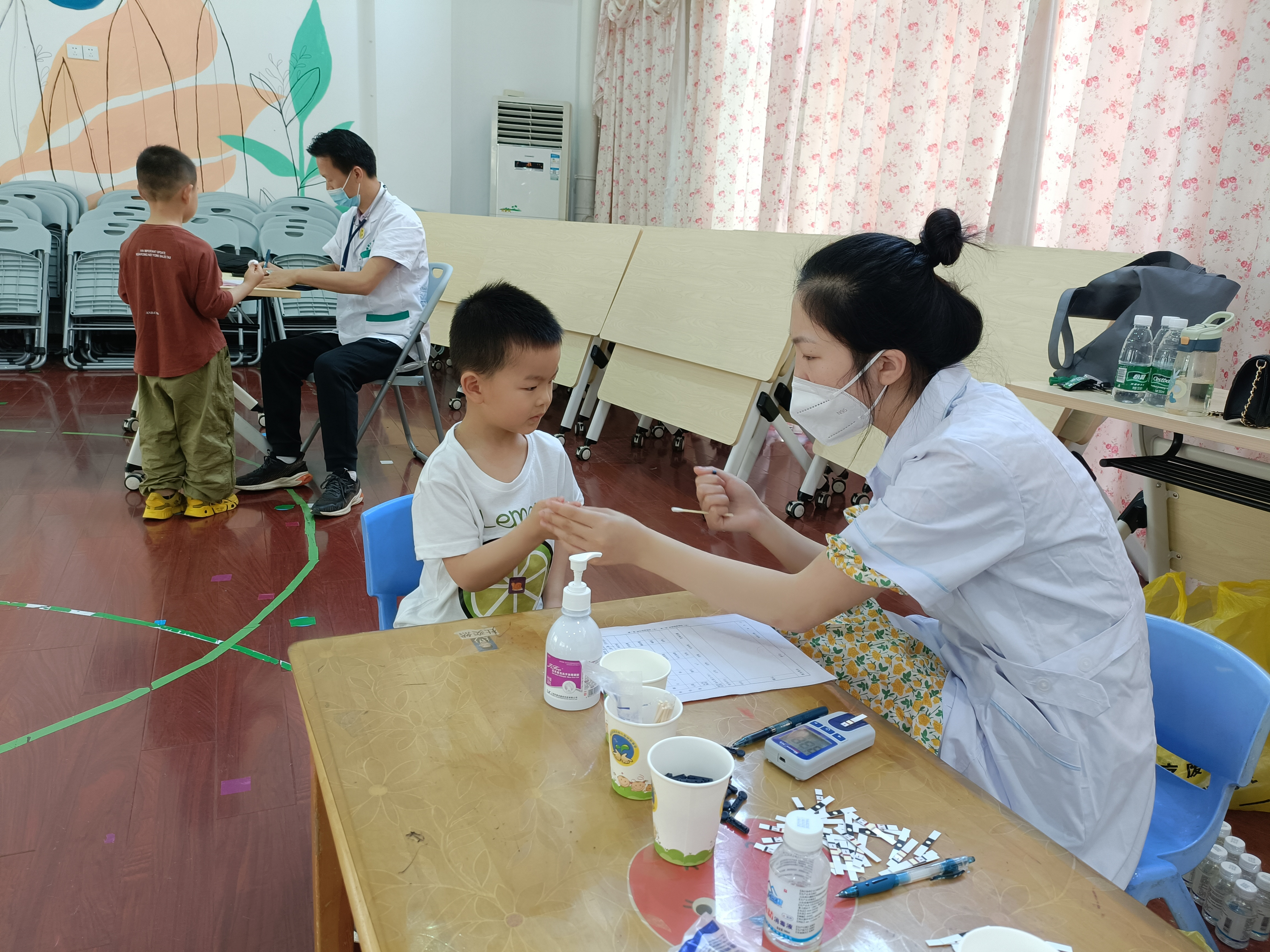 对孩子来说,血液检查是体检里最害怕的一项,但是在老师的陪伴下,很多孩子们都表现得很勇敢,个别害怕的幼儿,也被老师贴心地抱在怀里,在老师的鼓励安抚下,最终宝贝们战胜了恐惧。原来抽血没有想象的那么疼,我们都是最勇敢的孩子。