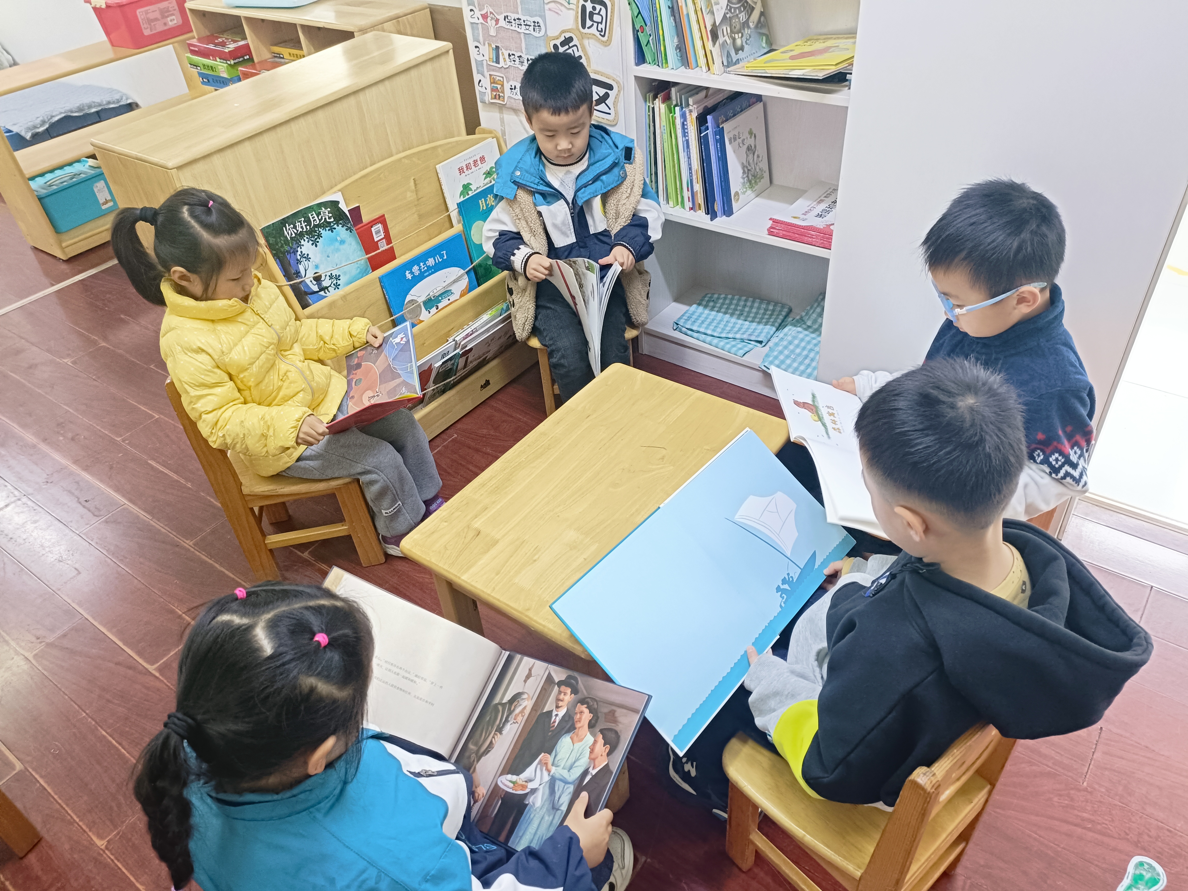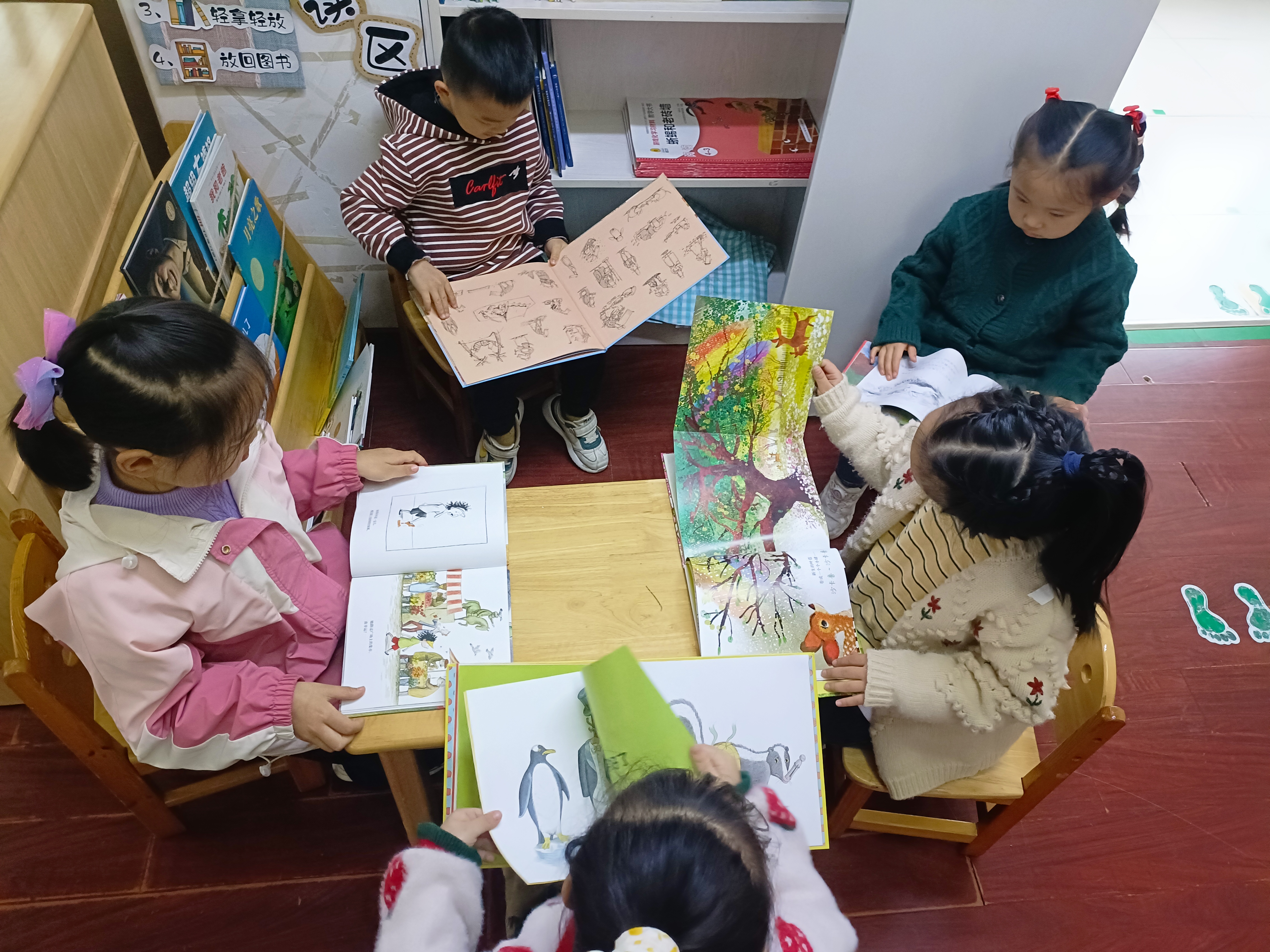 建构区:重在发展孩子的建构能力,学习建构技法。投放碳化积木和奶杯,孩子在建构区可以学习尝试各种不同的建构材料、方法、设计,激发创造力和想象力。 阅读区:孩子在沉浸式阅读游戏中,虽然还不能完整的去绘本故事的内容,但他们被丰富的画面和色彩所吸引,如同海绵吸水一样,安静自由的发挥自己的想象,获得快乐体验。 阅读区:孩子在沉浸式阅读游戏中,虽然还不能完整的去绘本故事的内容,但他们被丰富的画面和色彩所吸引,如同海绵吸水一样,安静自由的发挥自己的想象,获得快乐体验。