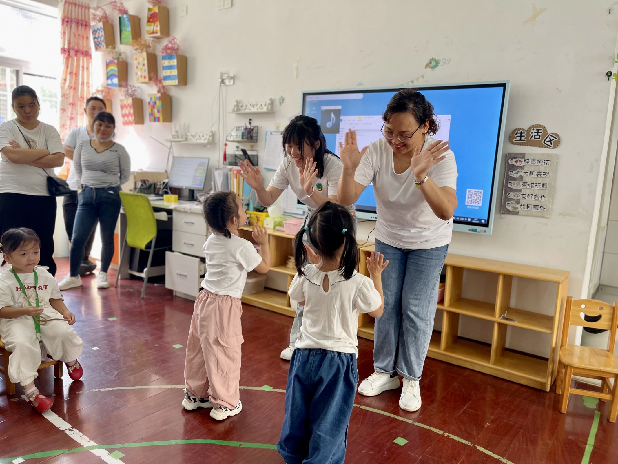 “你好,初次见面,我们要做好朋友哦!”幼儿园有好多新朋友啊!新生宝贝们初步熟悉了幼儿园、熟悉了老师,熟悉了晨检机器人,刚入园时紧张的情绪得到了缓解,慢慢地与老师有了亲密互动。在老师和爸爸妈妈的帮助下找到自己的物品,有序入厕、洗手、接水。在爸爸妈妈的温馨陪伴下,亲子游戏、亲子体验温情启航。 本次半日体验活动,让宝贝们对幼儿园生活充满了期盼和向往,也让家长们对孩子的幼儿园生活有了直观的了解,减少了小班新生家长许多不必要的困扰和担忧。在活动中家长们也感受到了老师的爱心与耐心,拉近了家园之间的距离。相信在家园的共同努力下,在老师们的爱心陪伴下,宝贝们一定能尽快适应幼儿园的生活,体验幼儿园集体生活带来的快乐。 |