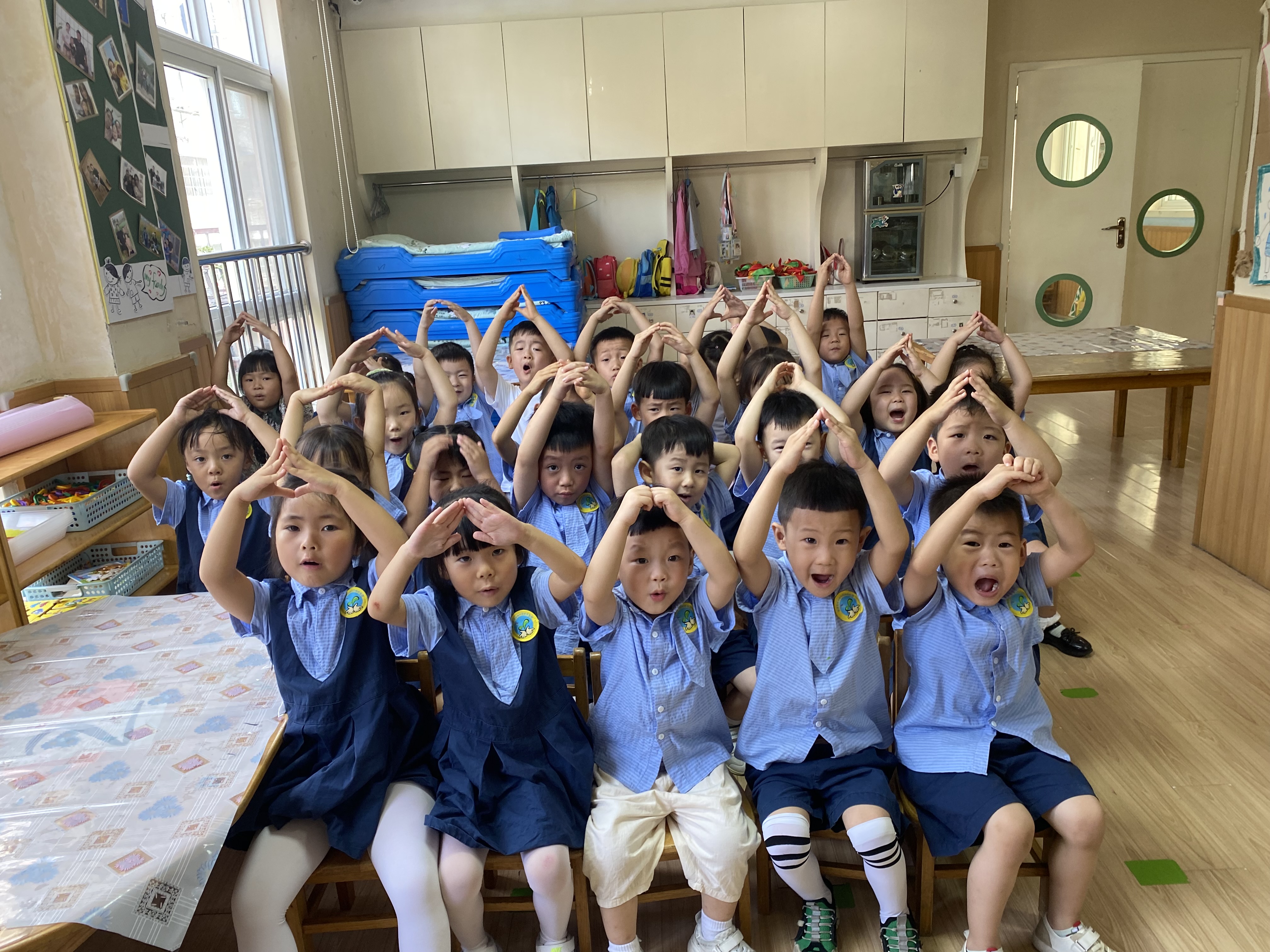 推普周活动期间,我班为了使每一位幼儿都能说普通话,爱说普通话,在各个方面、以多种形式进行了推广和深化。利用晨谈和教学活动,引导幼儿相互间,用普通话进行讨论、交流。在日常生活和游戏活动中,鼓励幼儿主动使用普通话与人进行交谈。引导幼儿大胆说,慢慢说,说清楚。利用角色游戏、情景表演等形式引发幼儿使用普通话与人进行交往的兴趣,并引导幼儿正确运用普通话。在开展正式语言活动(如:诗歌、故事、看图讲述等)的同时,有意识地组织幼儿玩各种有趣的语言游戏(如:手指游戏等),既可以激发幼儿学习普通话的兴趣,又有利于提高幼儿讲普通话的能力。语言活动和游戏中,注意丰富幼儿的词汇,并鼓励幼儿大胆使用词汇讲述短句,朗诵儿歌等。使普通话的表达能力也得到了很大的发展。根据中班幼儿的年龄特点收罗有教育意义和价值的录音带和碟片(各类故事带)引导幼儿观看和欣赏,提高幼儿普通话的水平。 我班主要开展的是手指操《我是中国娃》 |