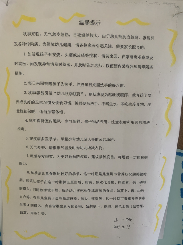 九月第二篇温馨提示