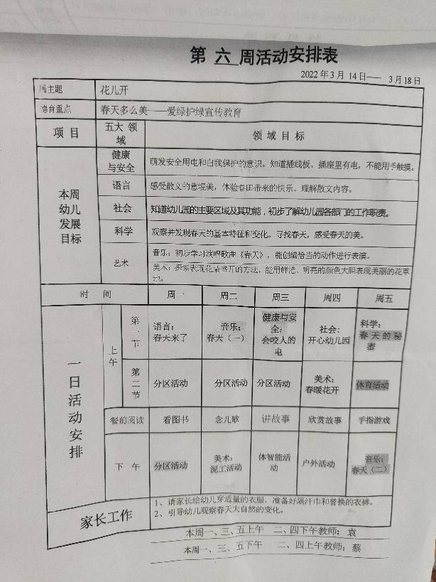 小六班第六周教学安排