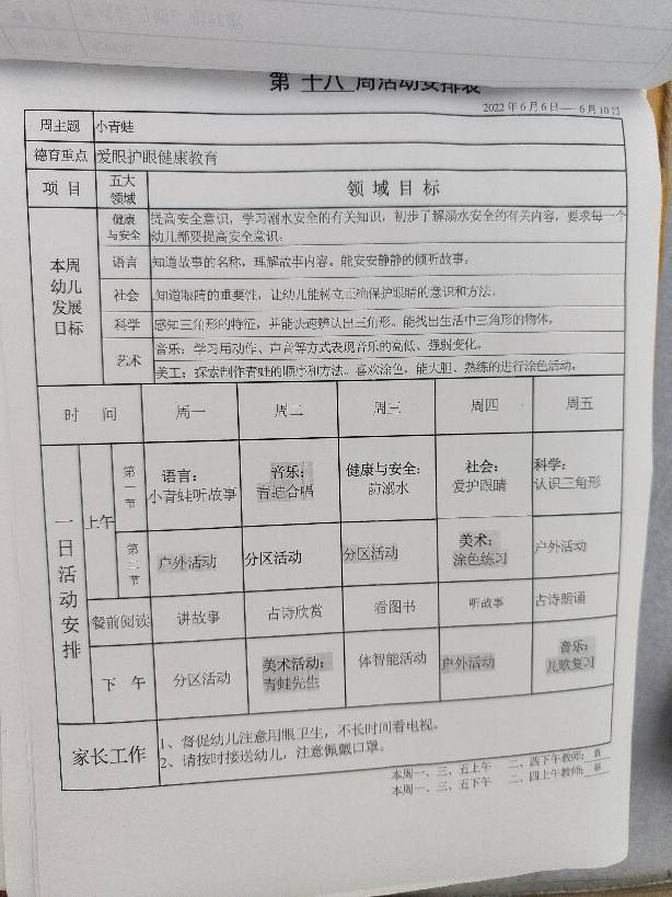 第十八周教学计划