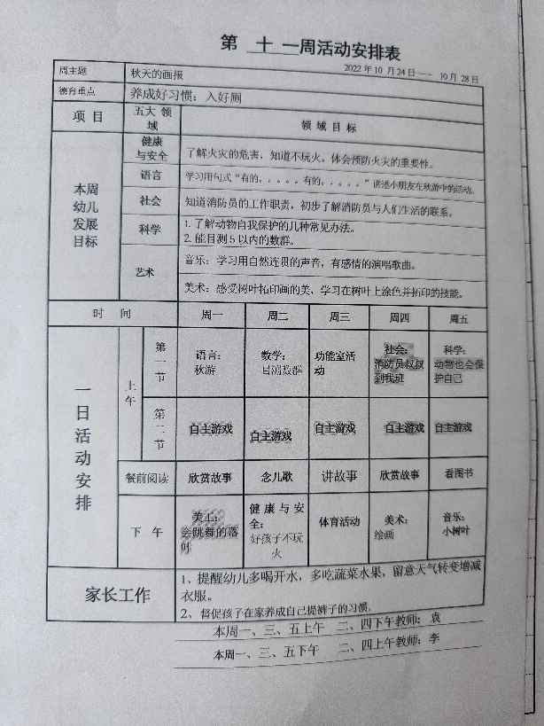 中六班第十一周教学安排