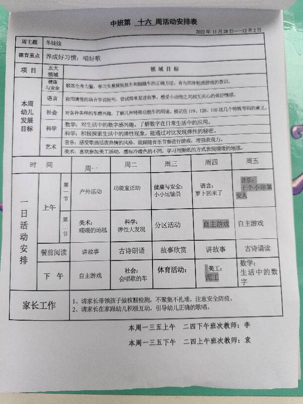 第十六周教学安排