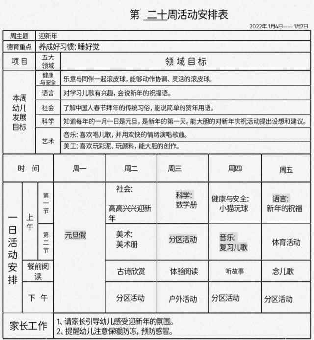 第二十周活动安排