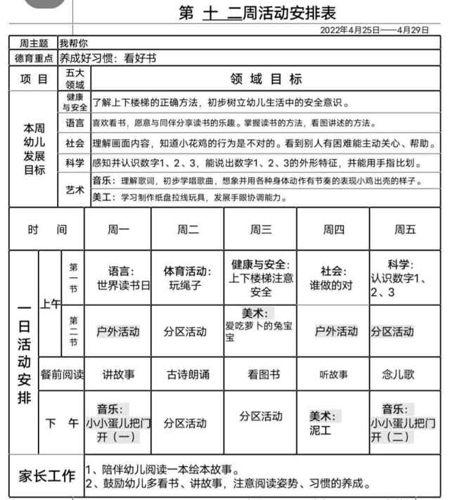 第十二周活动安排