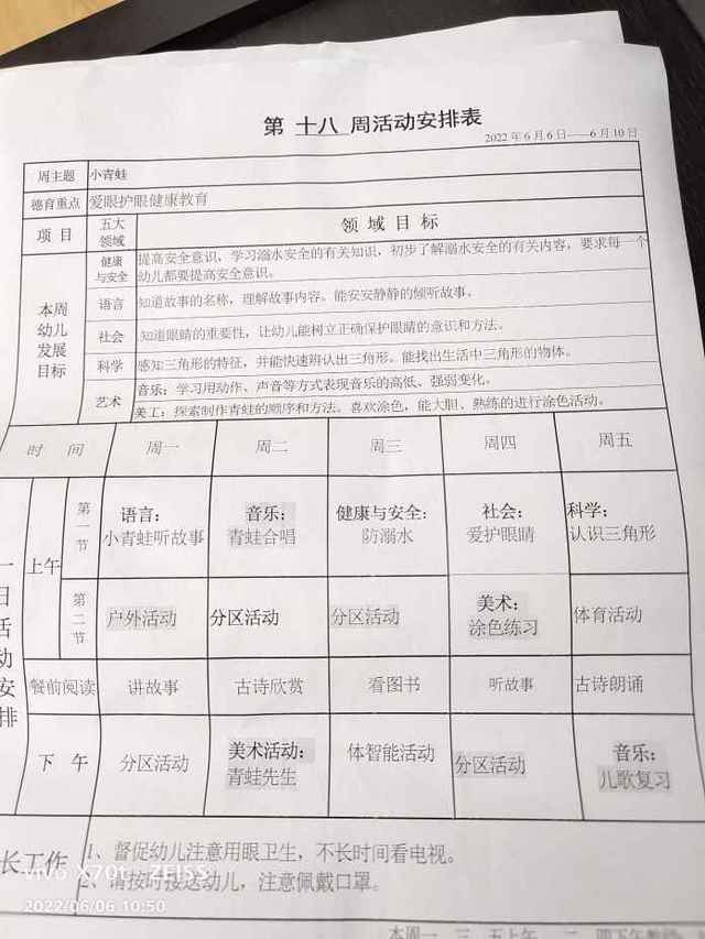 第十八周活动安排