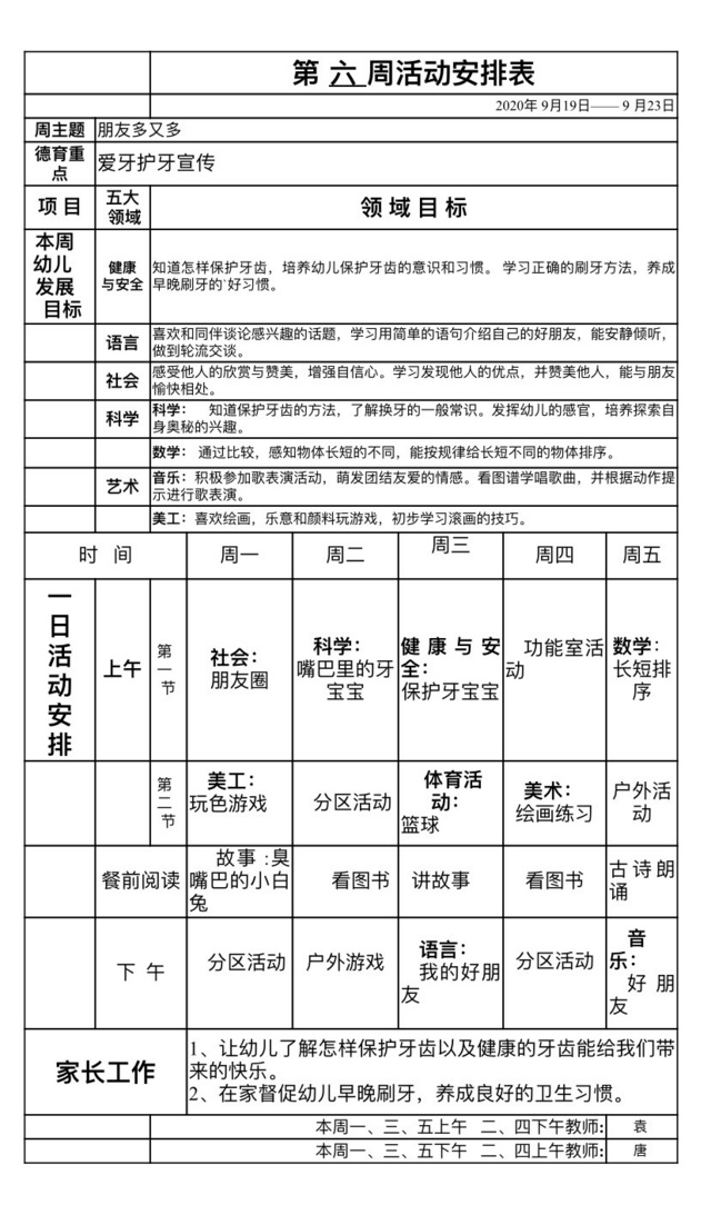 第六周活动安排