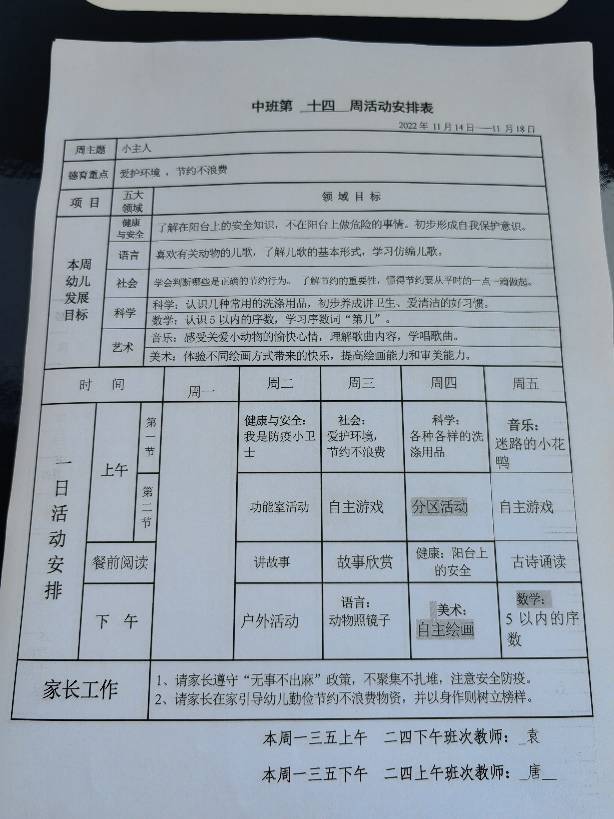 第十四周活动安排