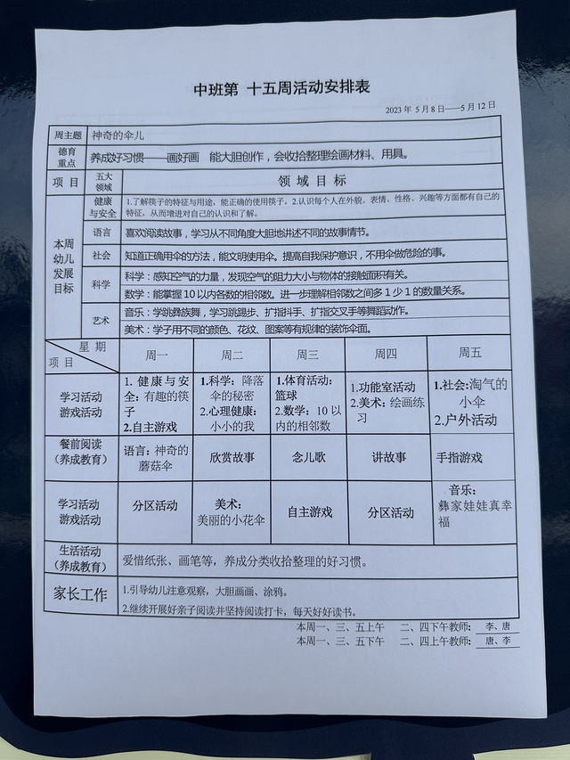 第十五周活动安排