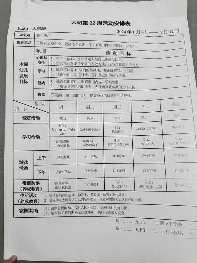 第二十二周活动安排