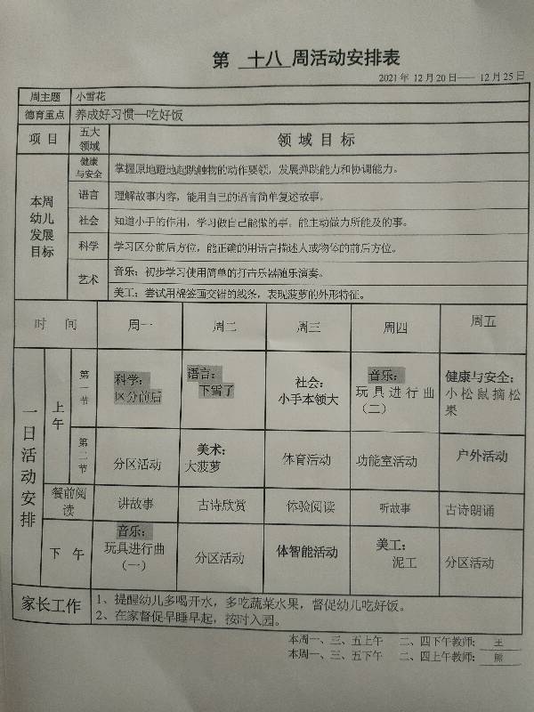 第十八周活动安排