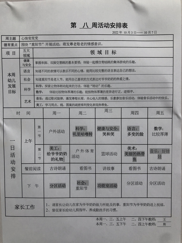 第八周周计划安排表