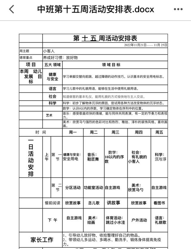 第十五周周计划表
