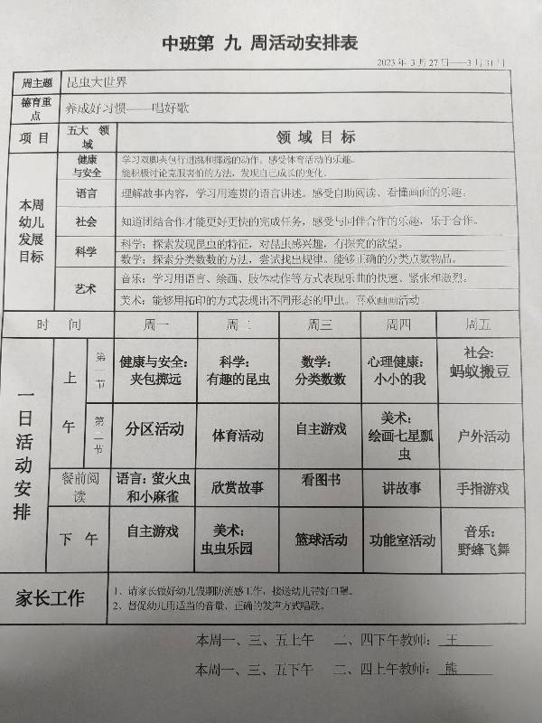 第九周活动安排