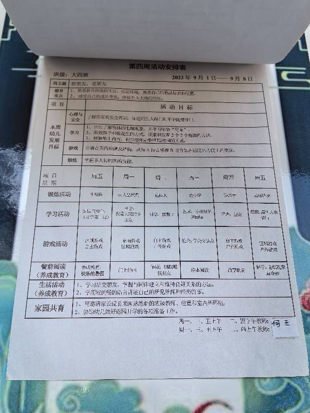 第四周周计划安排