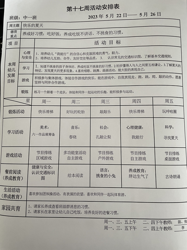 第十七周活动安排