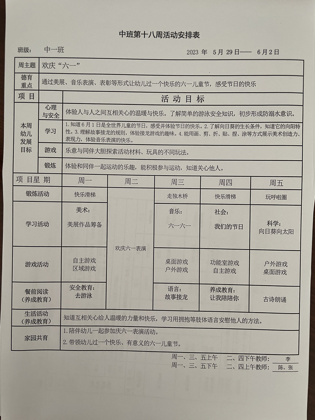 第十八周活动安排