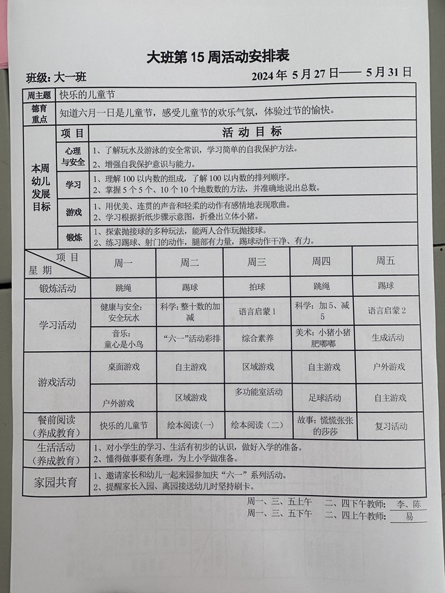 第十五周活动安排
