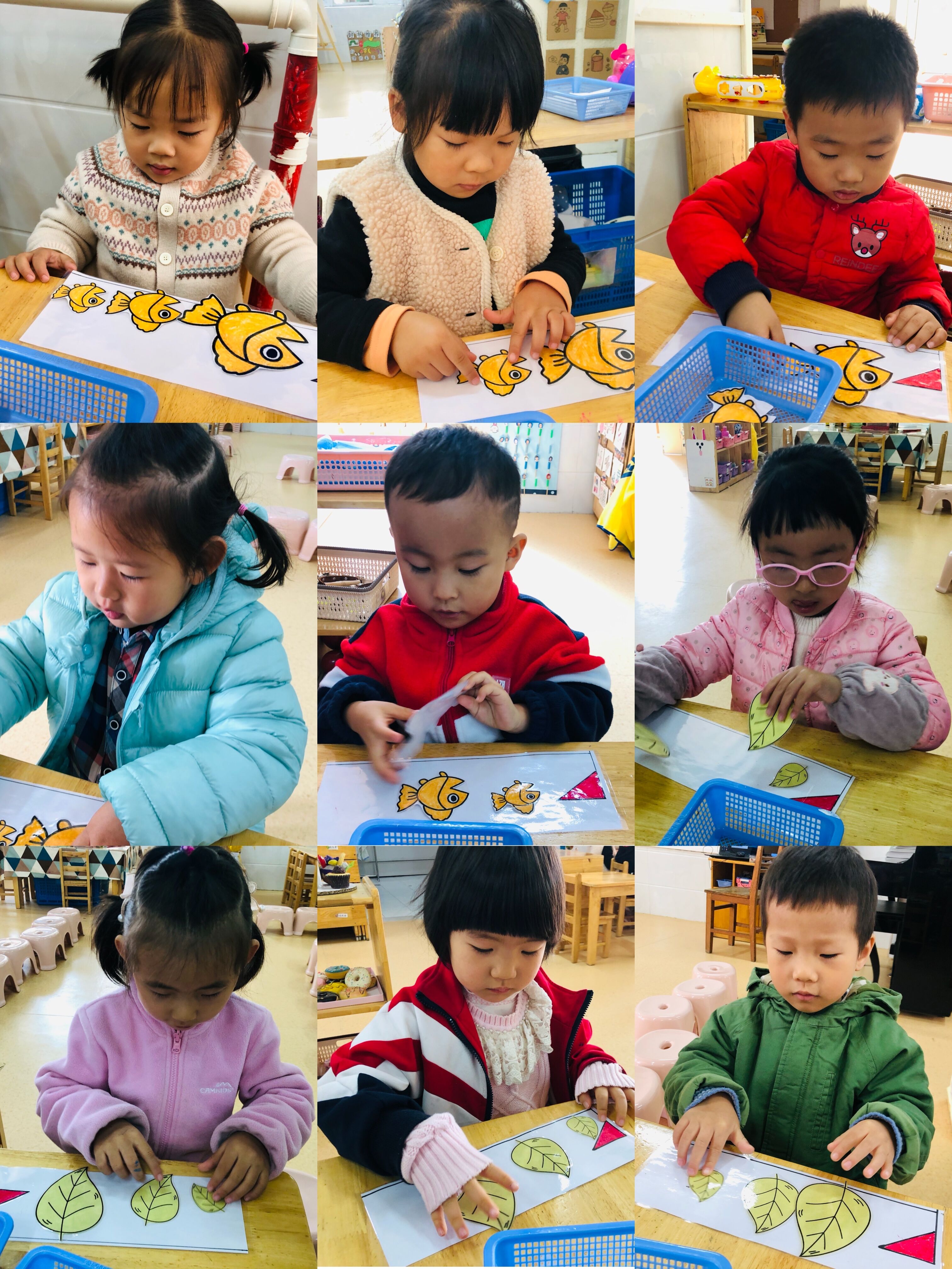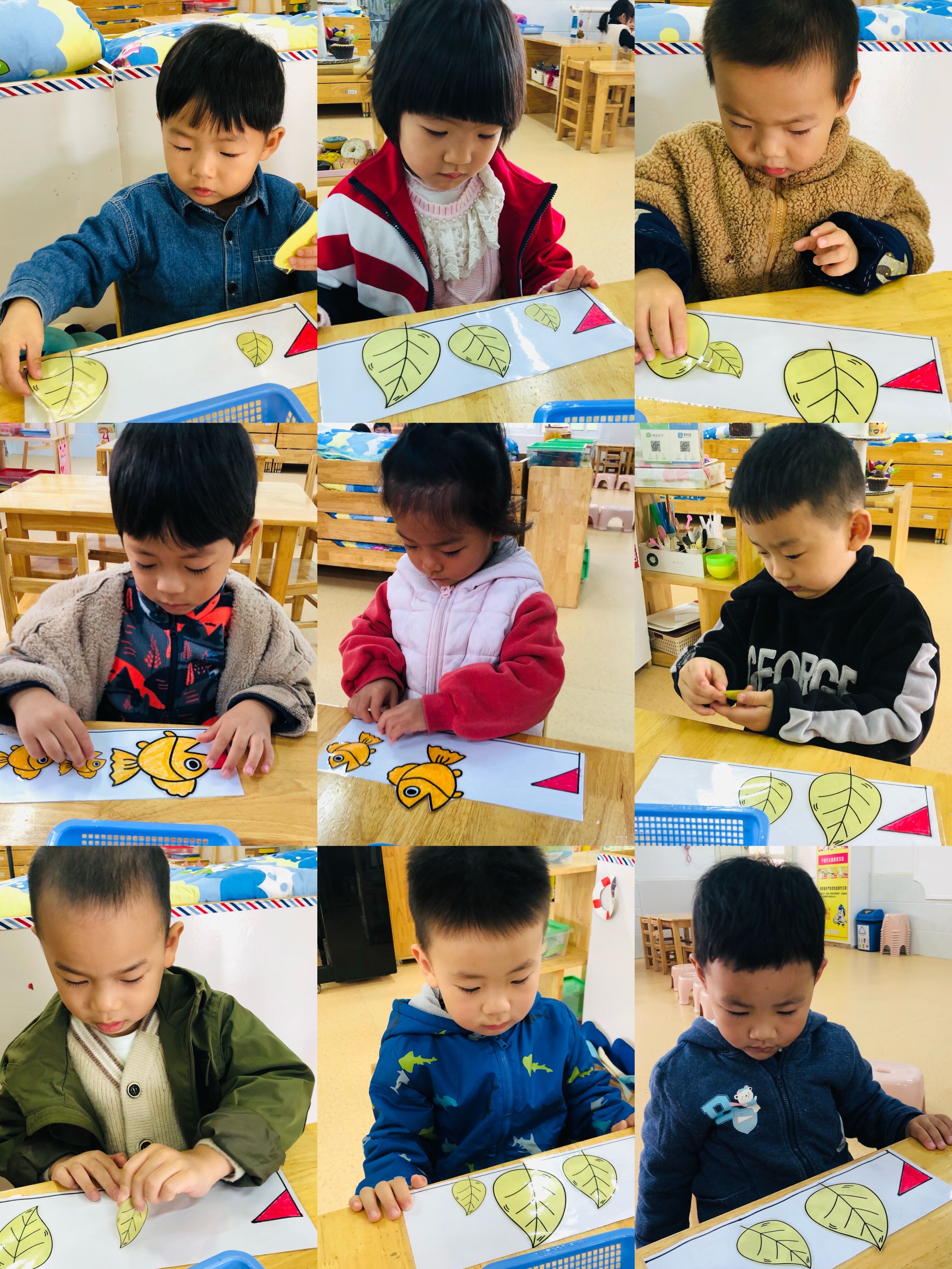 我会给树叶宝宝排队啦!从大到小排、从小到大排我都会哦!