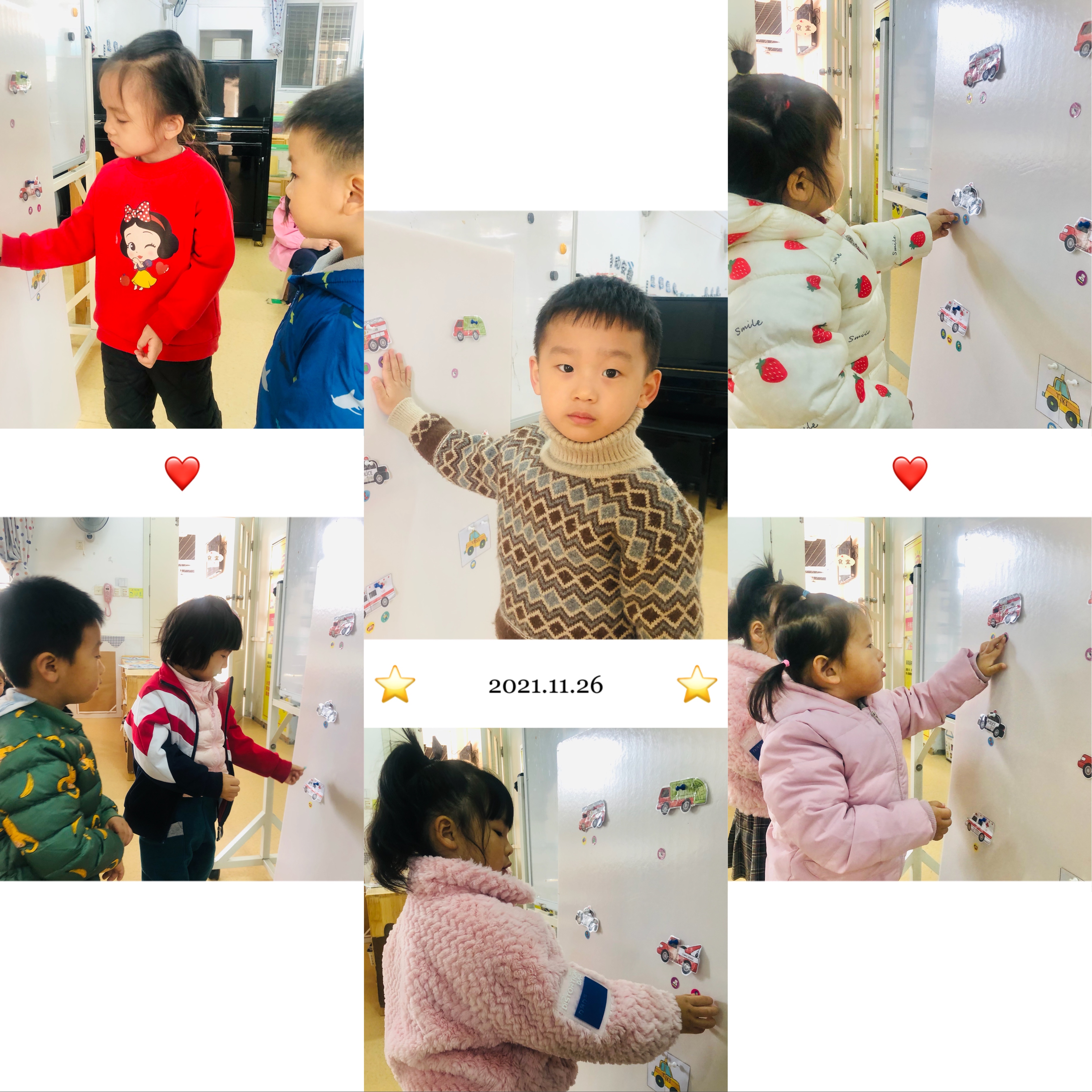 孩子们在活动中收获了许多,比如通过主题活动“小蚂蚁坐汽车”的故事懂得了尊老爱幼、给有需要的人让座的美德;通过儿歌“大嘴车”进一步认识了洒水车和垃圾车的特征及功能;通过美术活动“各种各样的车”、“车轮滚滚”知道了车轮的秘密。看,宝贝们还进行了我喜欢的车投票活动。