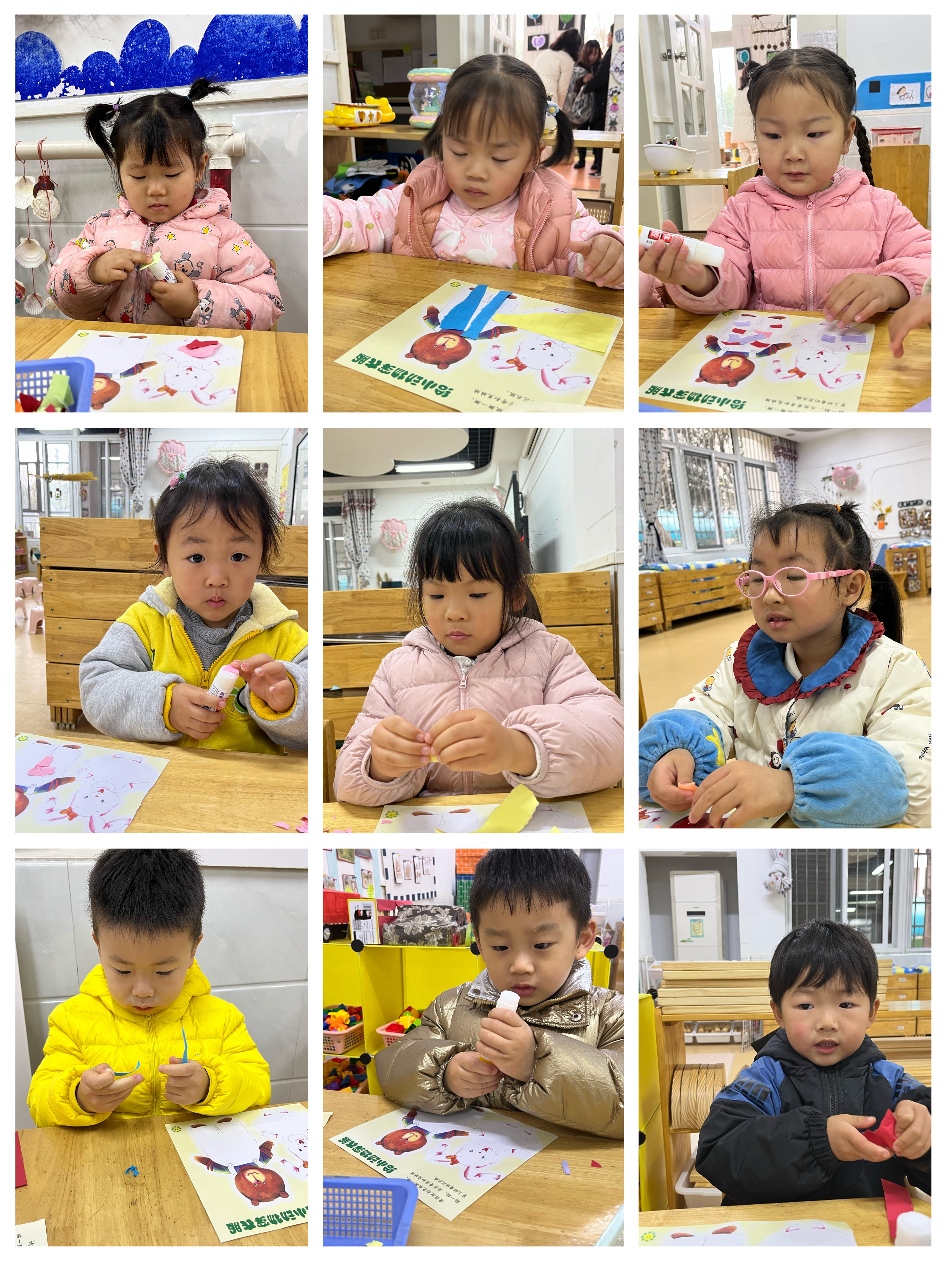为了让幼儿体验艺术的各种形式,感受艺术的多元化,今天开展了"我的花穿花衣"手撕粘贴画活动,让我们给小动物做一身漂亮的衣服吧!