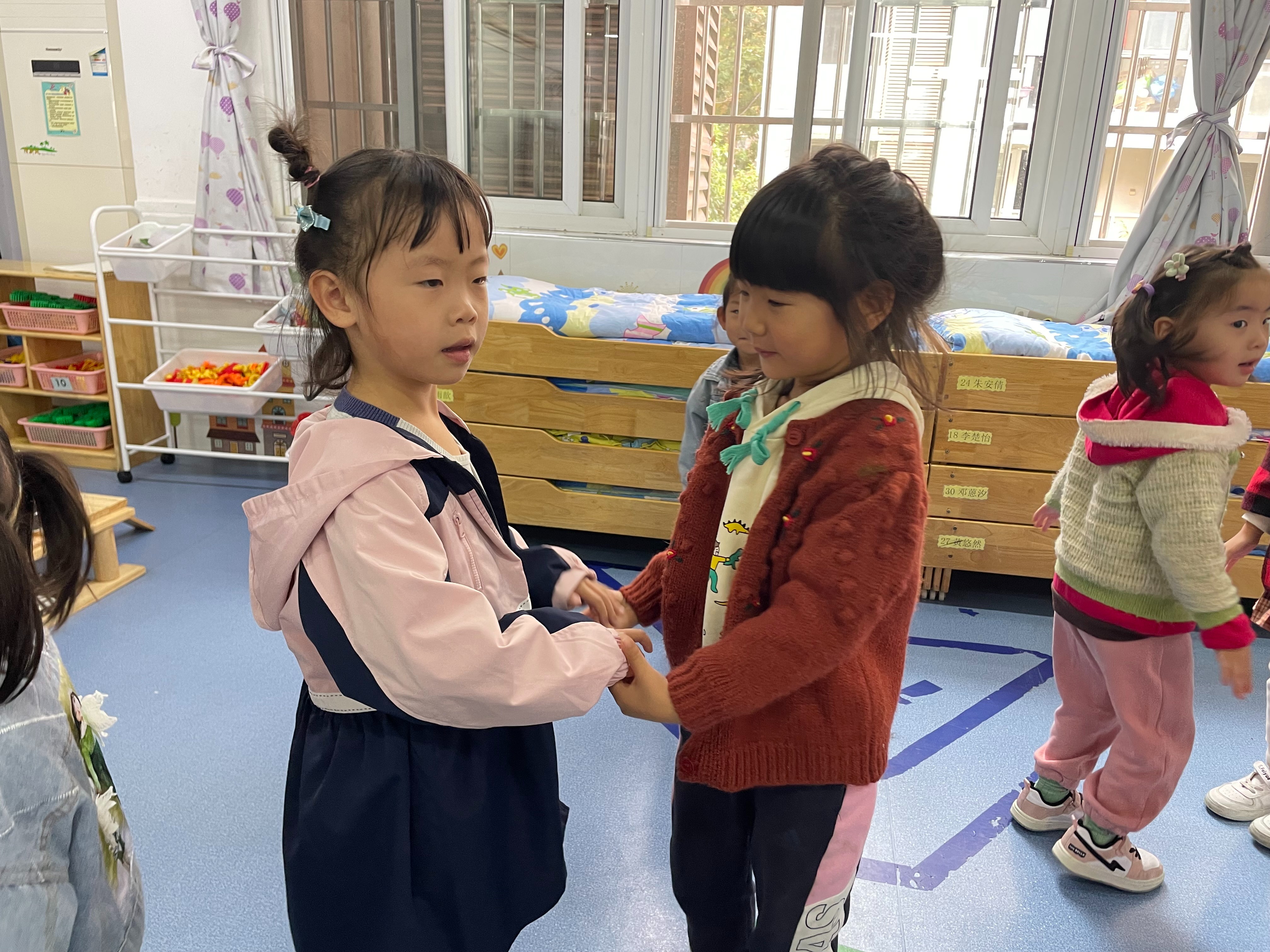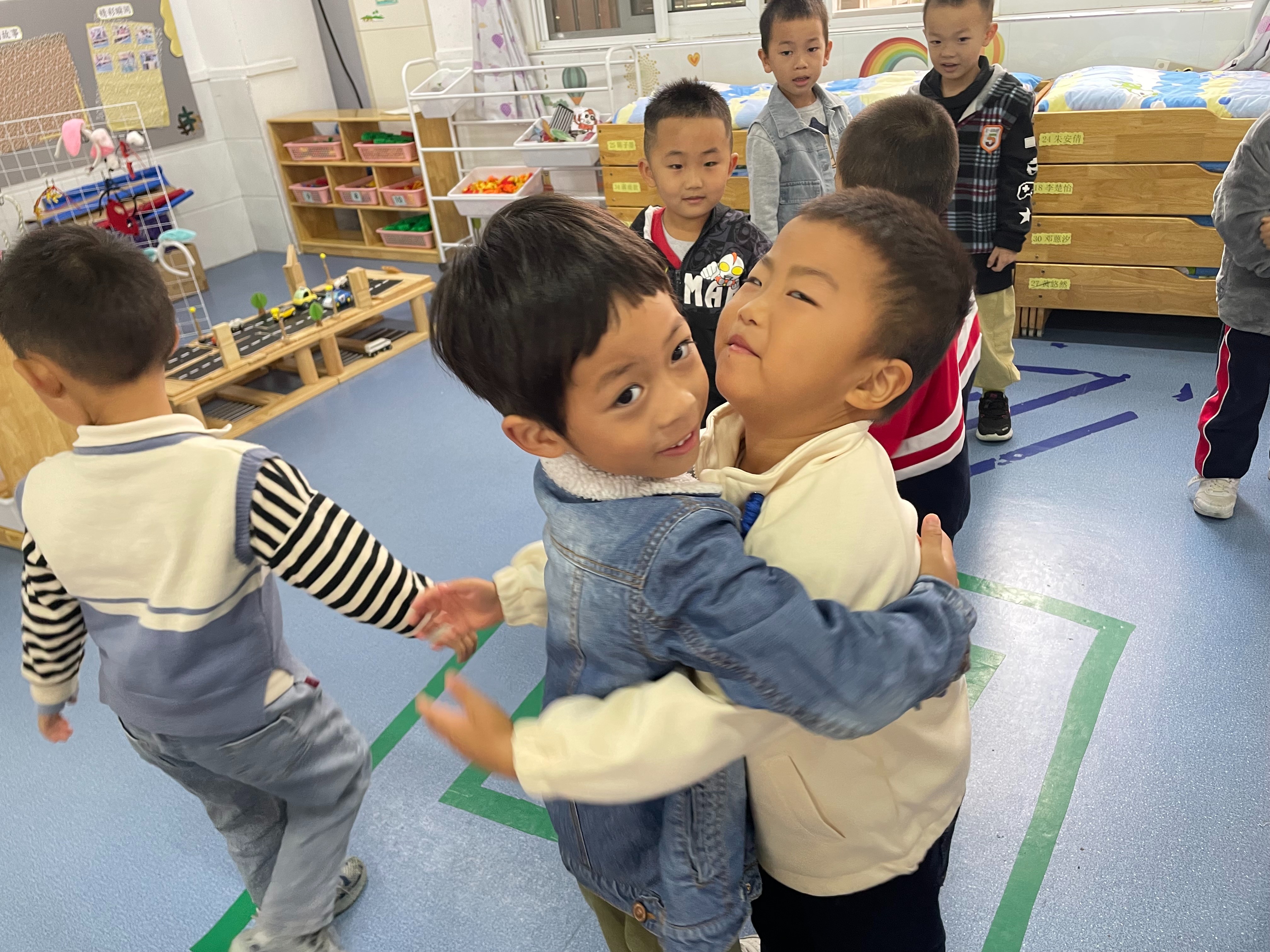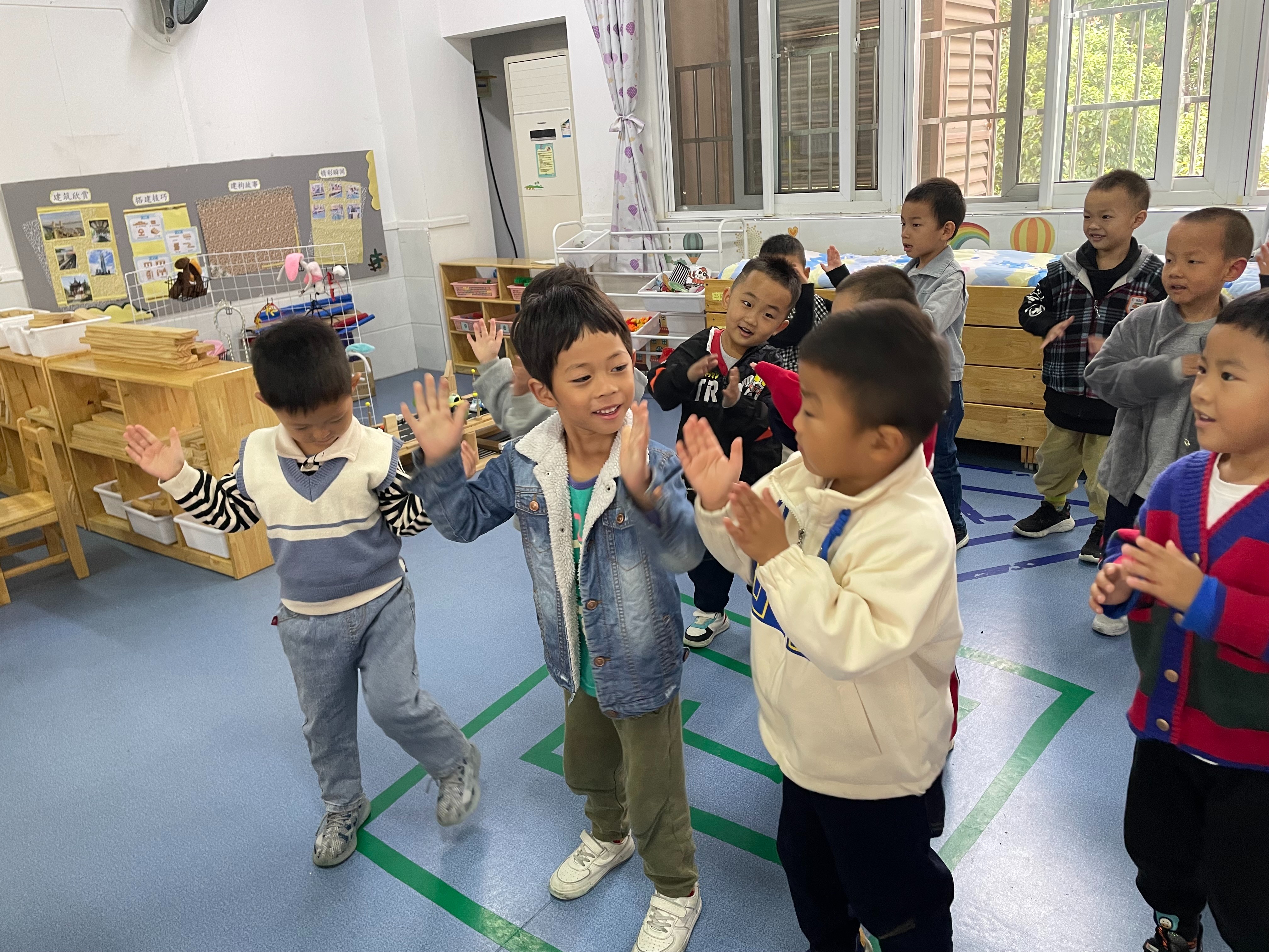 今天我们一起学习了舞蹈《欢乐舞》,让孩子们体验不断交换舞伴跳舞的快乐,学习合拍地随音乐舞蹈,初步懂得在集体中找朋友以及与朋友跳舞的交替规律,培养孩子们的音乐节奏感,发展他们的表现力,快来看看小朋友的表现吧~