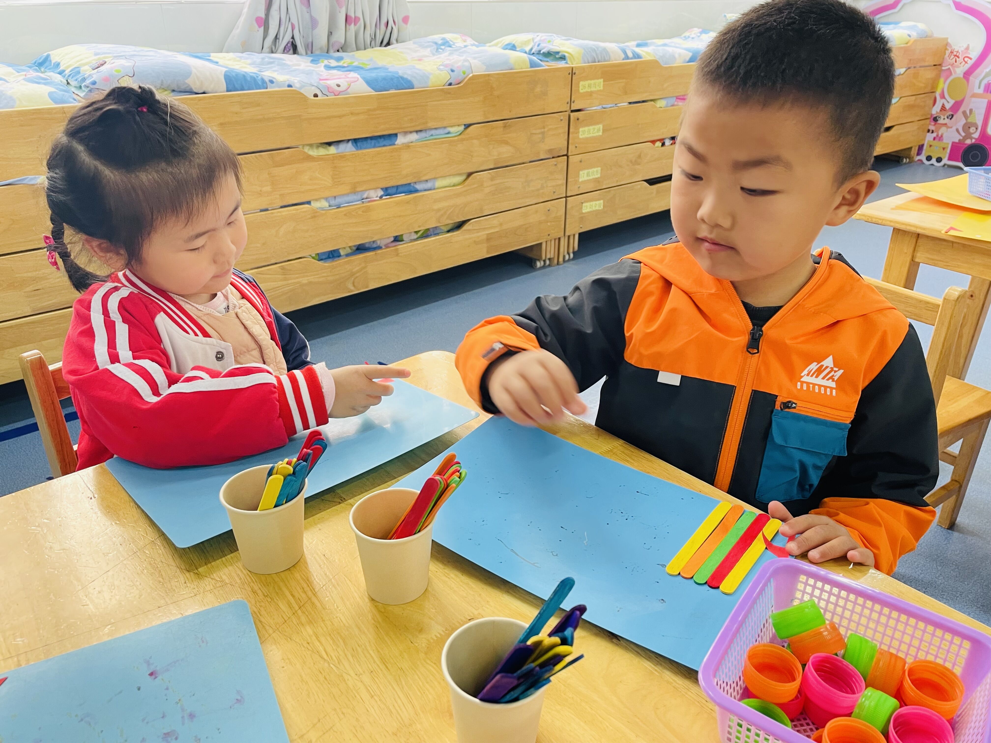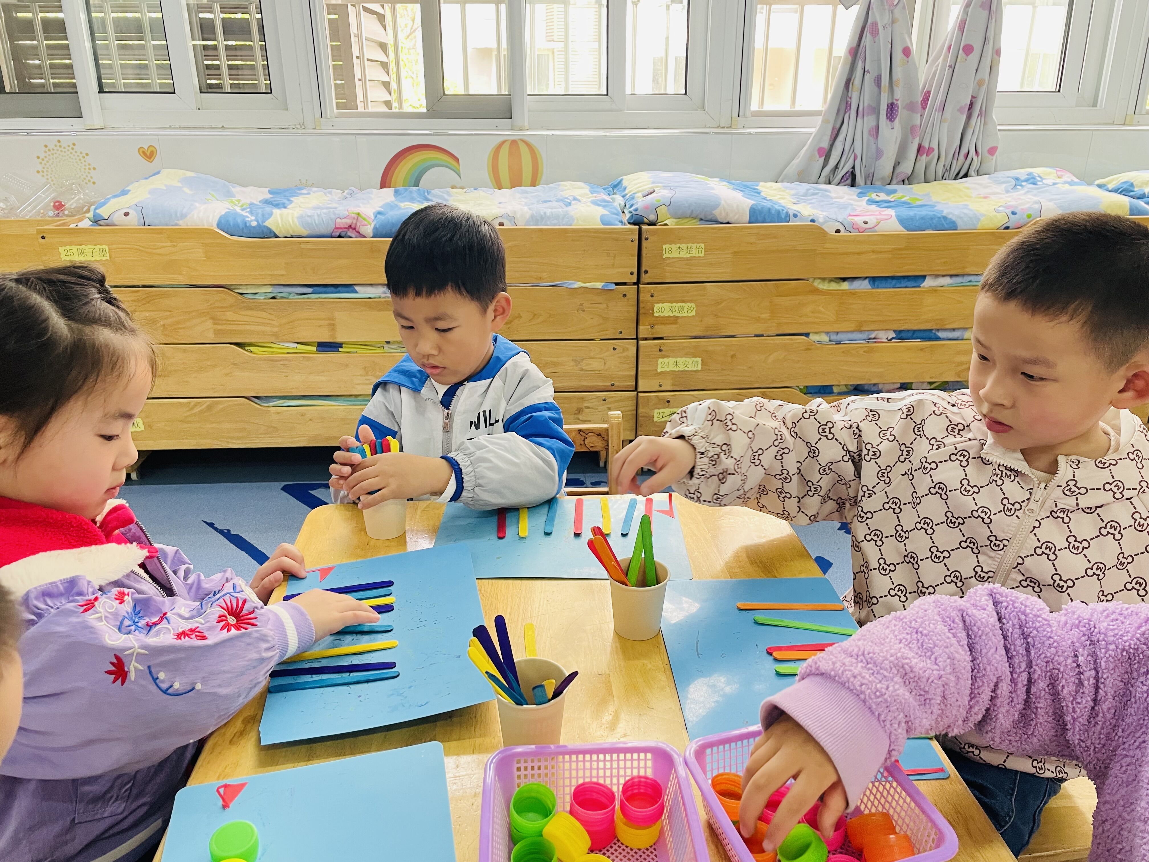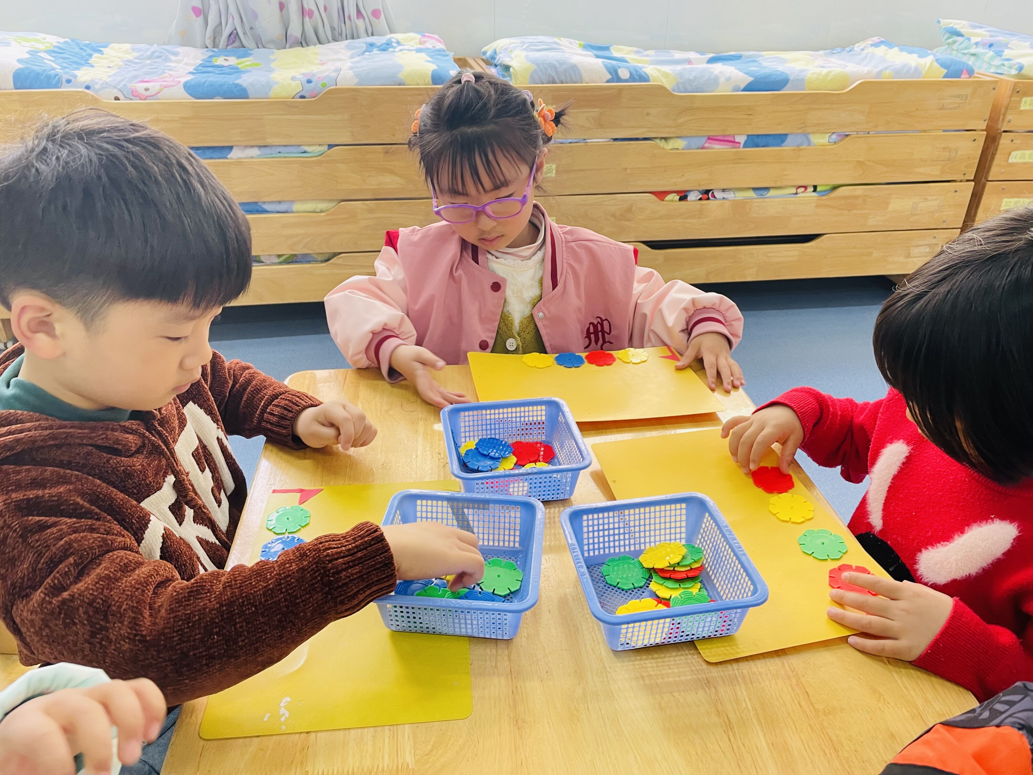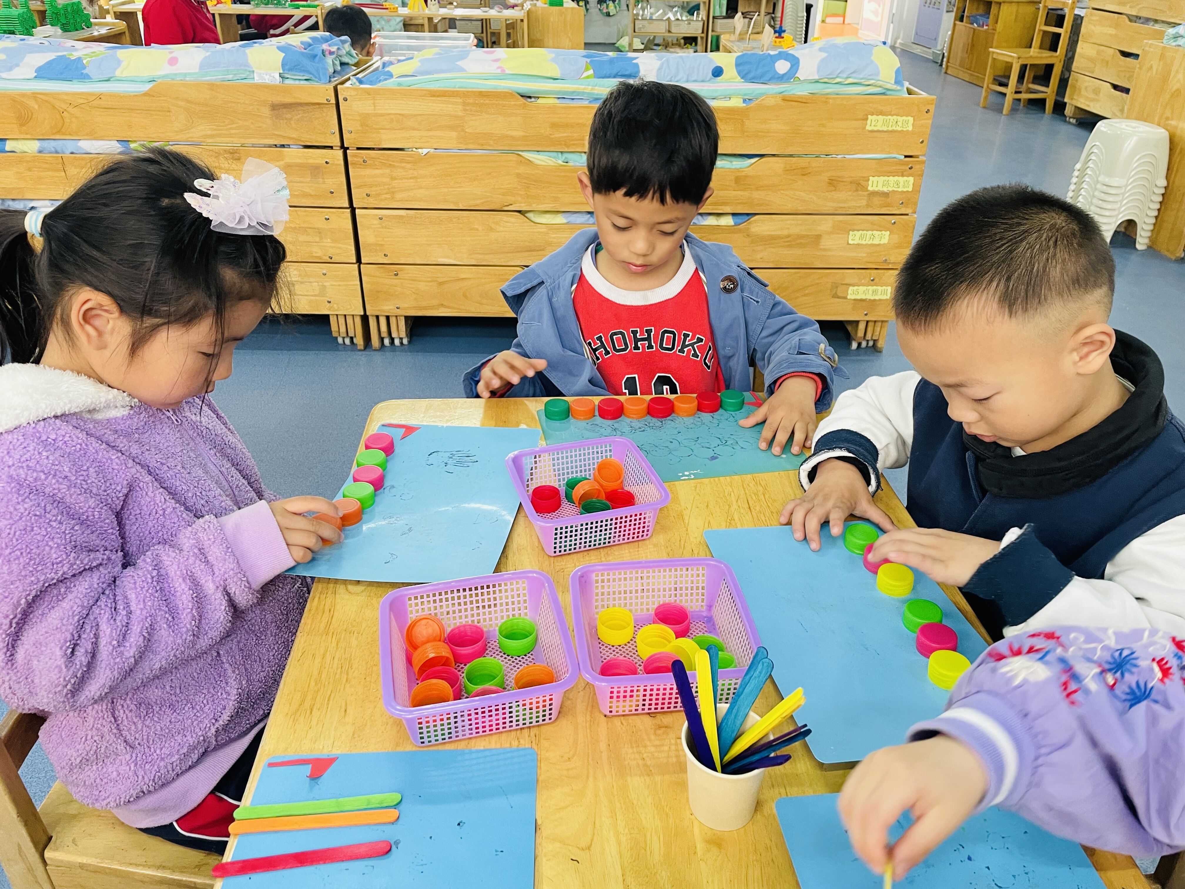 活动后,孩子们对于按照ABC模式排列很感兴趣,希望爸爸妈妈们在家也能和孩子们玩一玩模式排列的游戏哦!