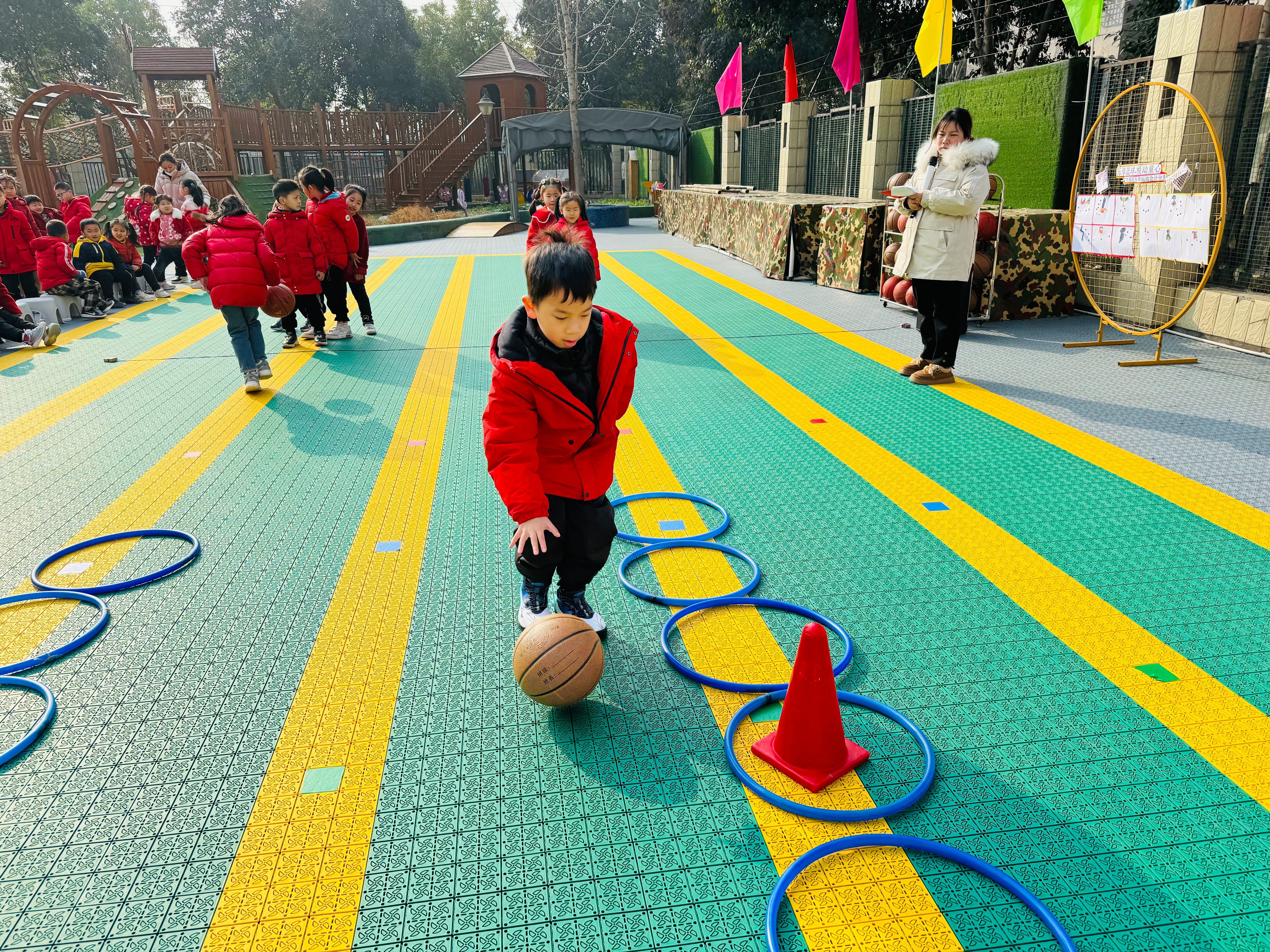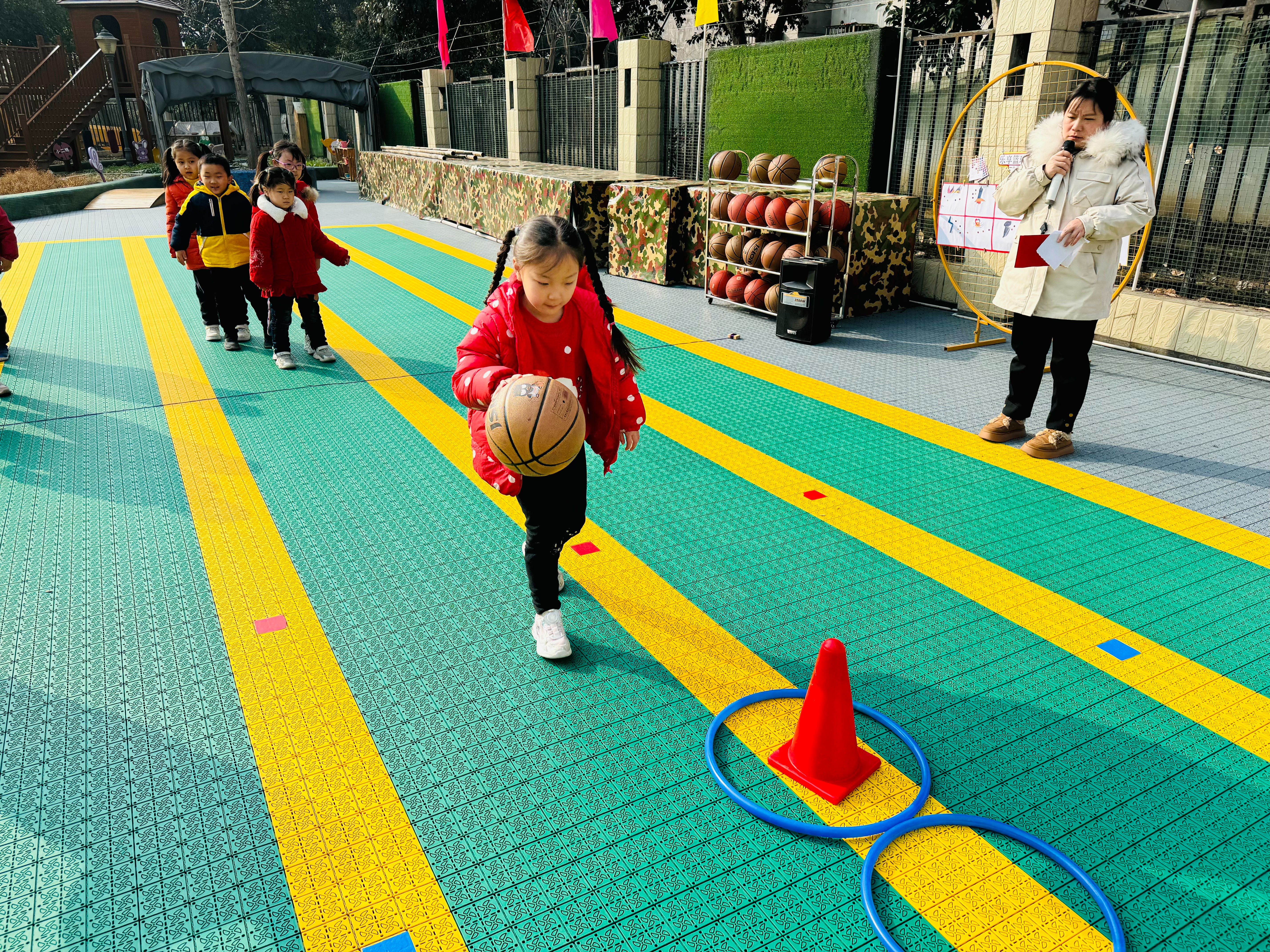 踏着冬日的气息,沐浴着冬日的暖阳,伴随着欢声笑语,我们迎来了东门幼儿园以“乐享篮球,悦动童心”为主题的篮球运动会,运动会以篮球为主题,编排了丰富多样的篮球游戏,《3—6岁儿童学习与发展指南》明确指出:“要开展丰富多样、适合幼儿年龄特点的各种身体活动,激发幼儿参加体育活动的兴趣,养成锻炼的习惯。”因此,通过活动促进孩子对体育运动的兴趣,增强孩子身体素质,提高幼儿各方面的综合能力。
