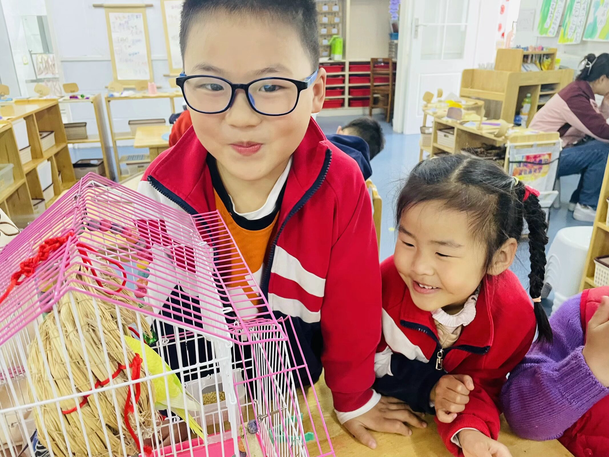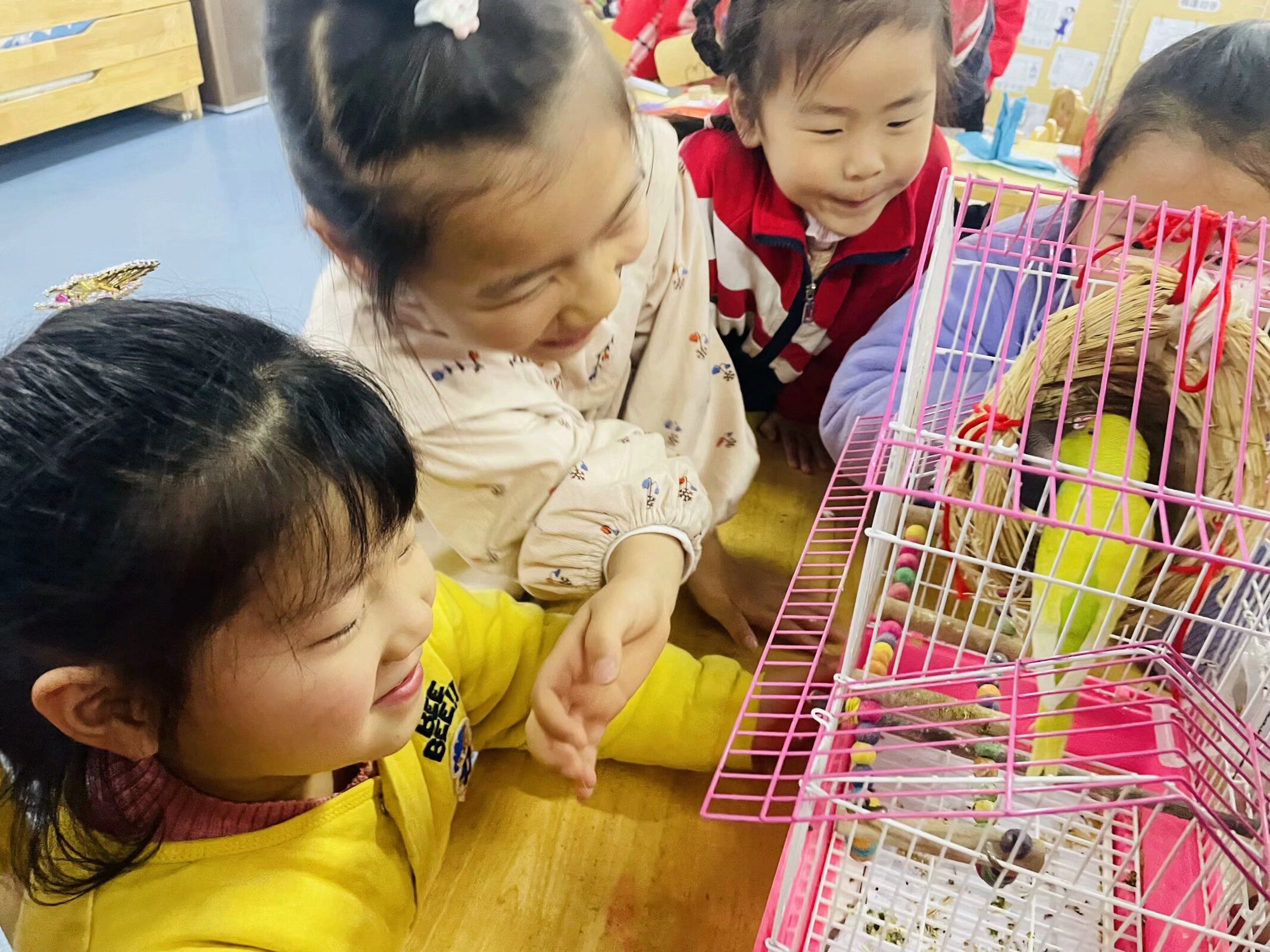 大一班的自然角里迎来了两个新朋友——鹦鹉。两只鹦鹉成了孩子们的“爱宠”,鹦鹉的话题时常挂在孩子们的嘴边,见到孩子们对鹦鹉有着强烈的探究兴趣,于是便开启了与小鹦鹉的故事。