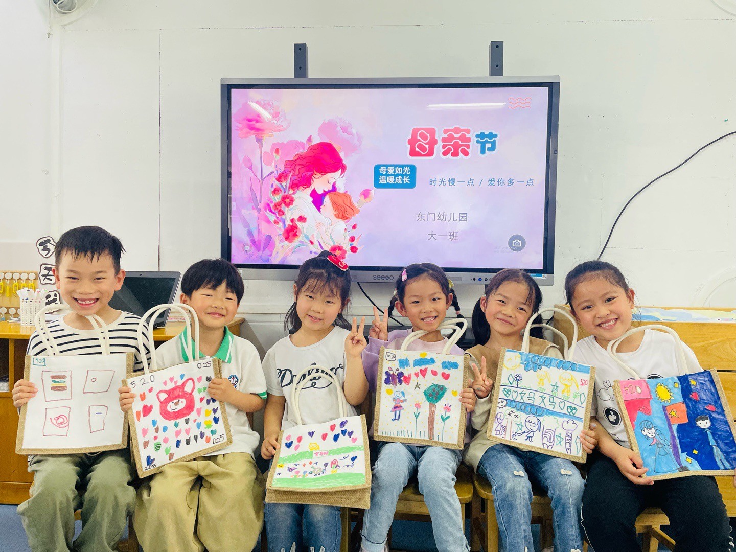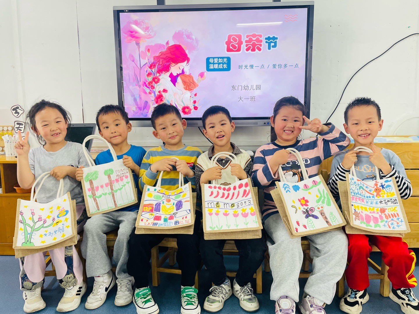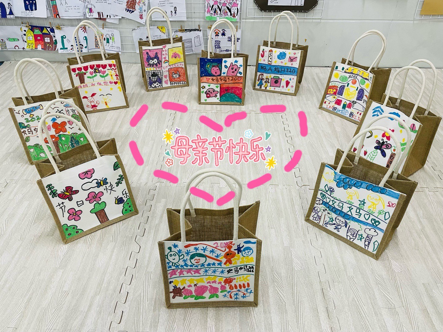 为了让孩子们更好地感受母爱的无私和伟大,学会感谢母亲、感恩生活,点燃关爱的火花,老师和小朋友们一起了解母亲节的来历,并一起制作了手提包来表达对母亲的尊敬和关爱。