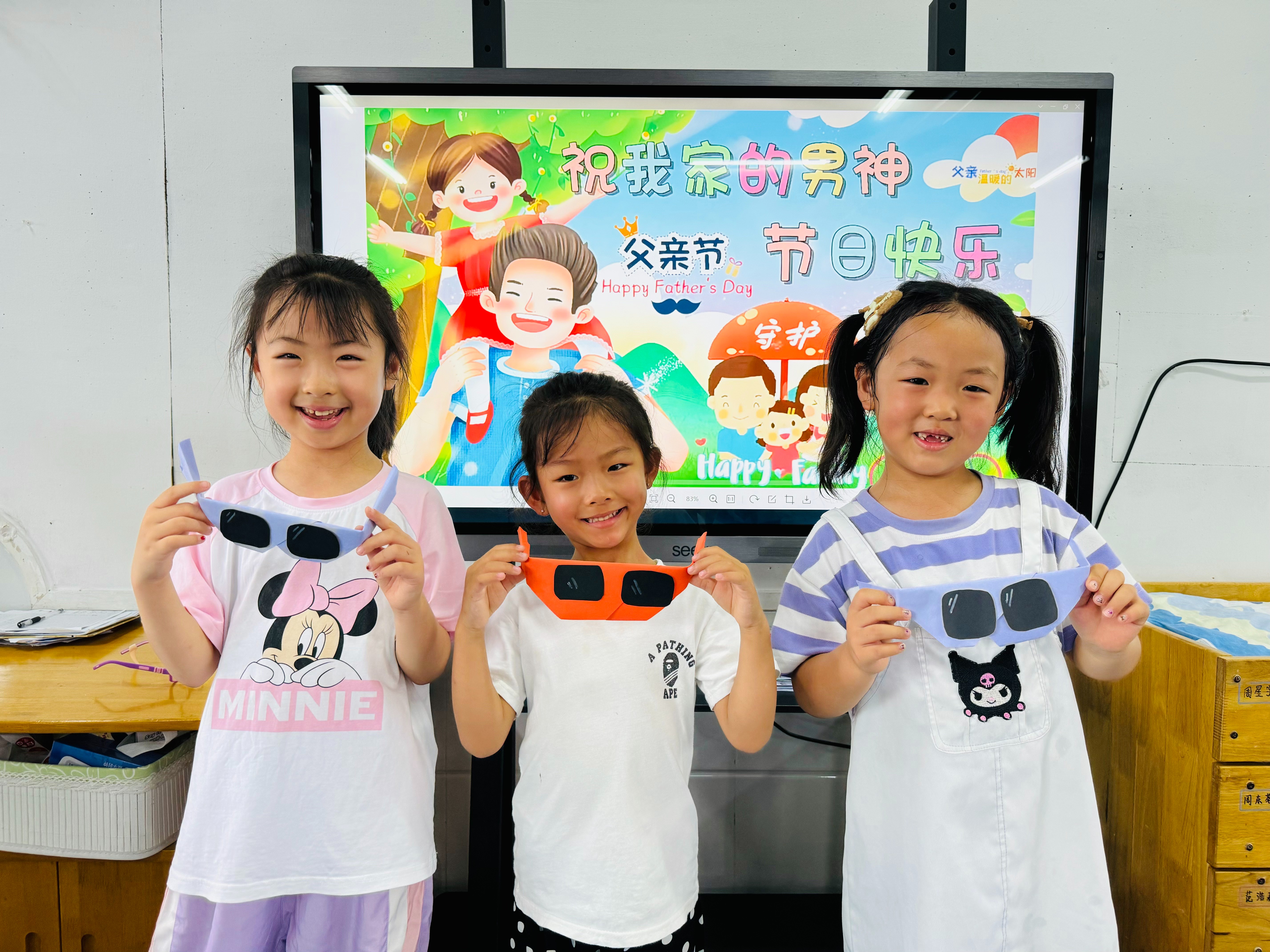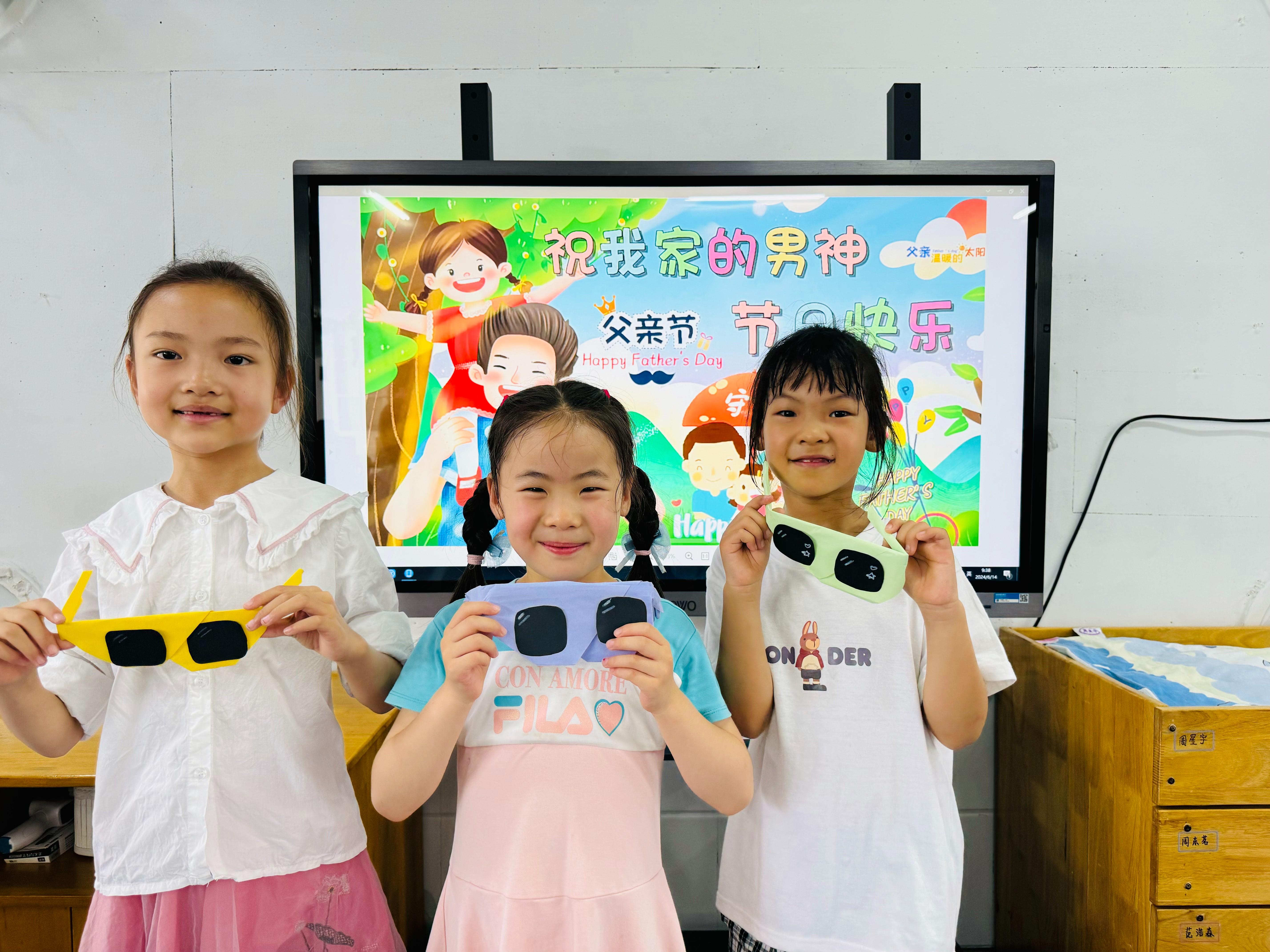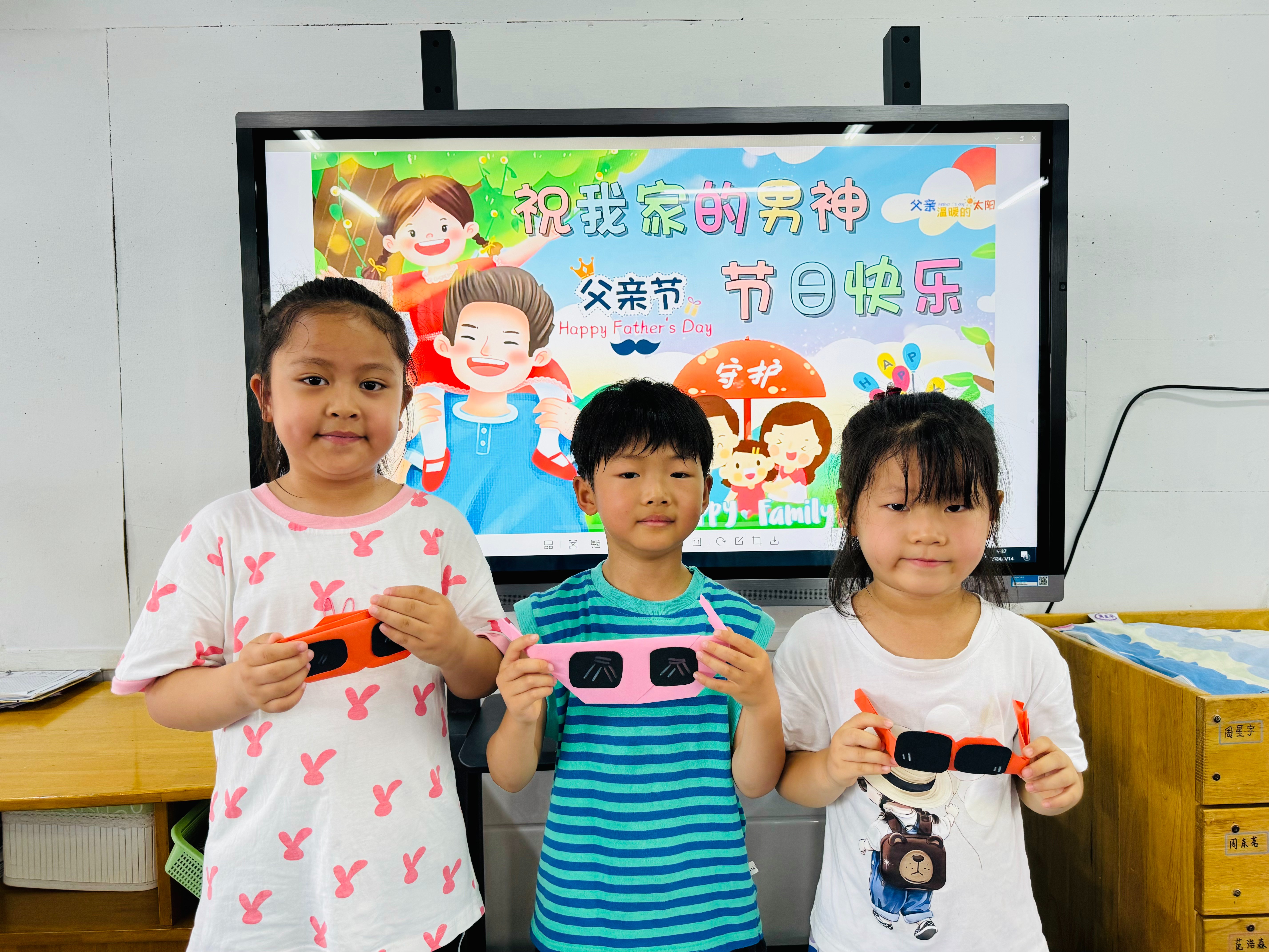 今天,孩子们一起制作了酷酷的眼镜送给自己的爸爸。我们一起来看看吧!