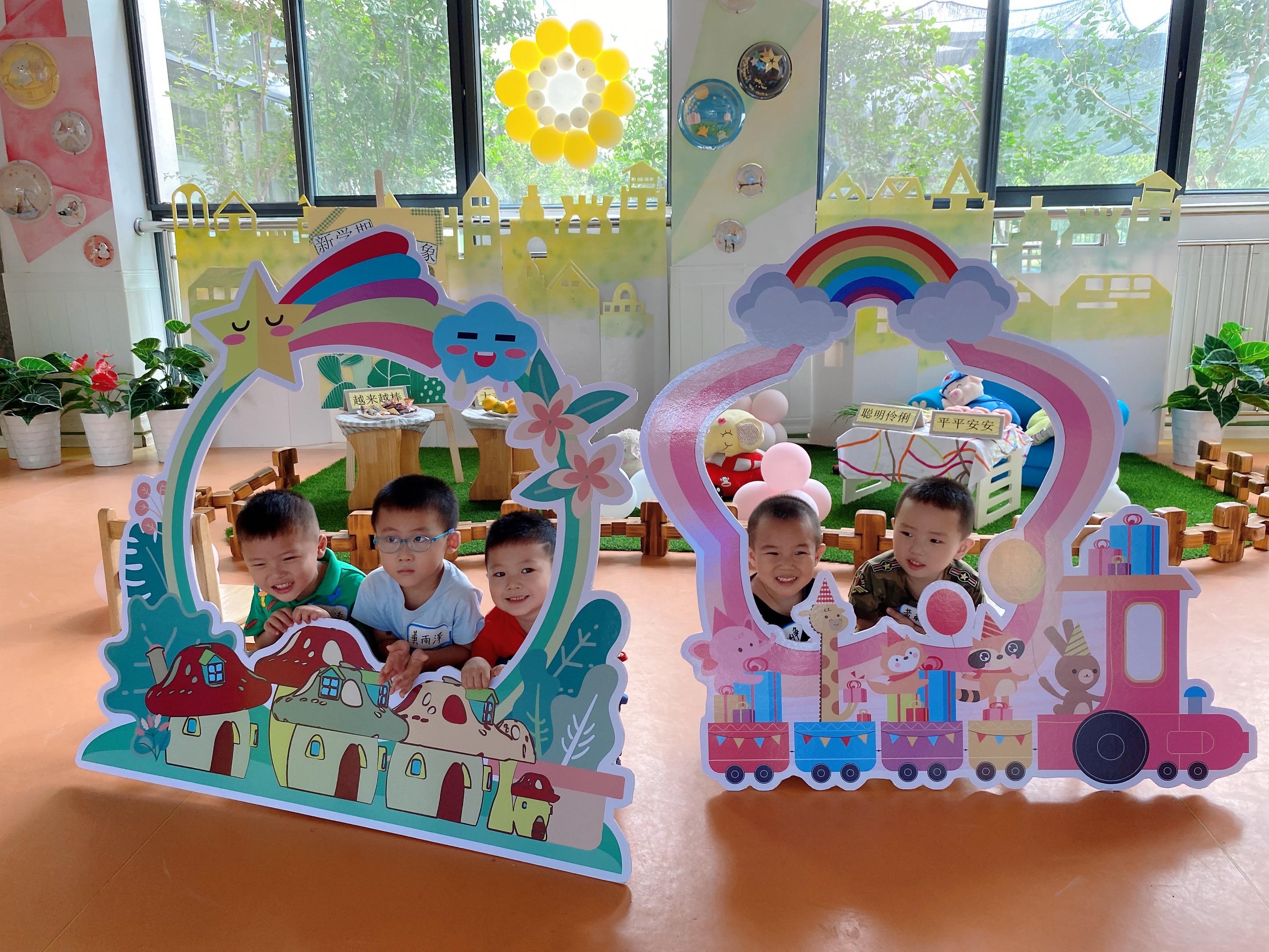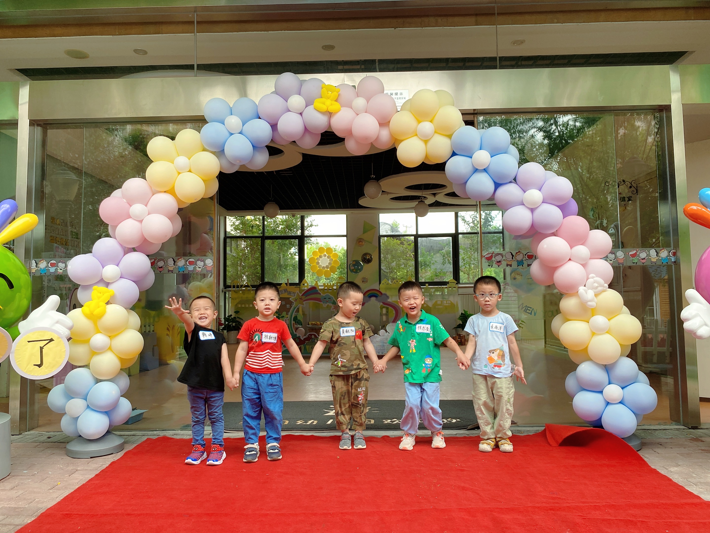 哇塞!幼儿园里气球拱门真漂亮哦!