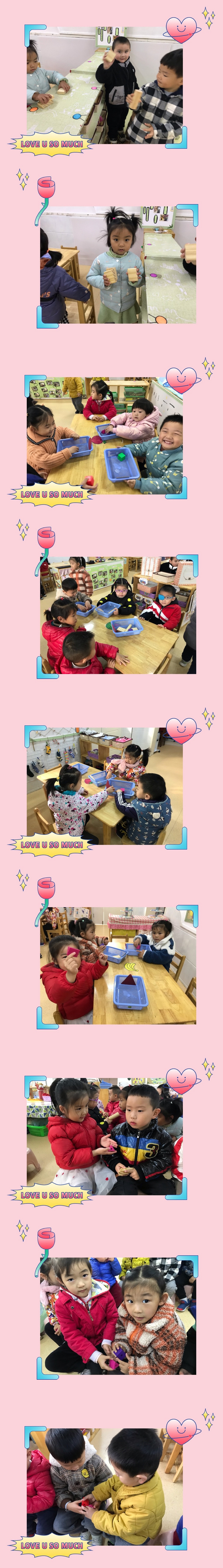 通过本次活动的开展,不仅让孩子们感知到身边各种图形的物品,同时也在活动中潜移默化地感受到了分享的乐趣,。