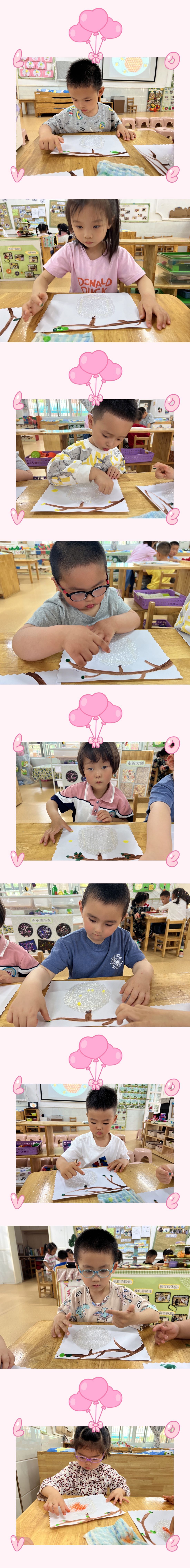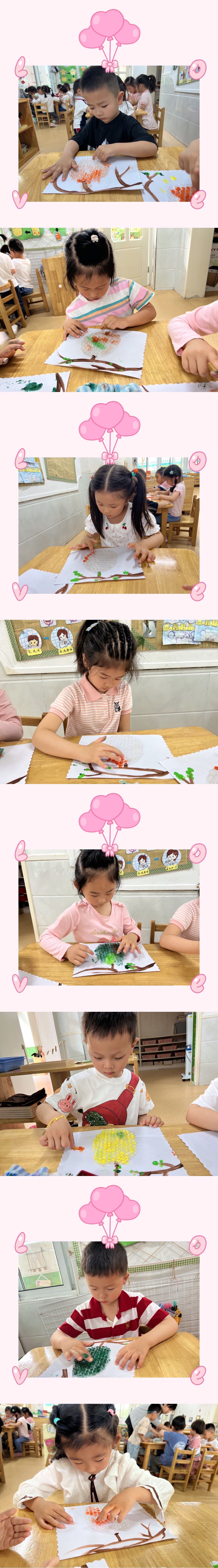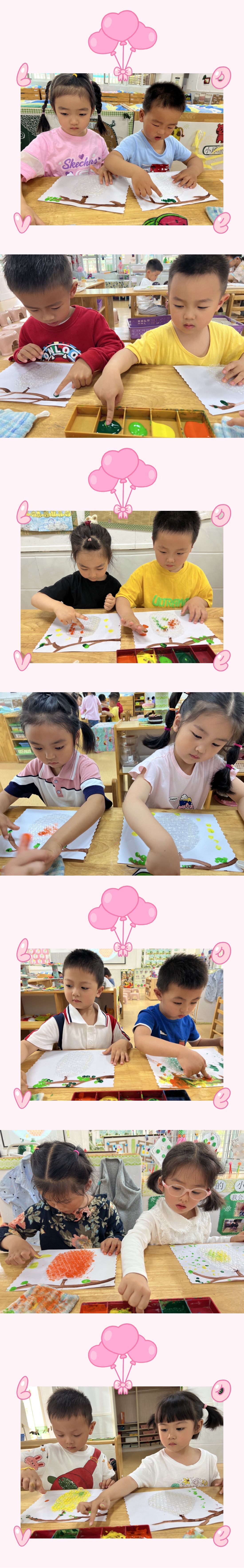 大自然是一个丰富多彩的世界,《指南》艺术领域中提出艺术是人类感受美、表现美和创造美的重要形式,也是表达自己对周围世界的认识和情感态度的独特方式。每一个幼儿心里都有一颗美的种子,在本次活动中幼儿能够仔细观察了解蜂巢的特征和形状,通过对气泡膜材料的认识,大大提高了幼儿操作的兴趣。活动中幼儿不仅能够表现蜂巢的外轮廓,还能够大胆运用各种水粉颜料进行拓印,对于活动的积极性非常高,从而促进幼儿对蜂巢作品的创作兴趣。
