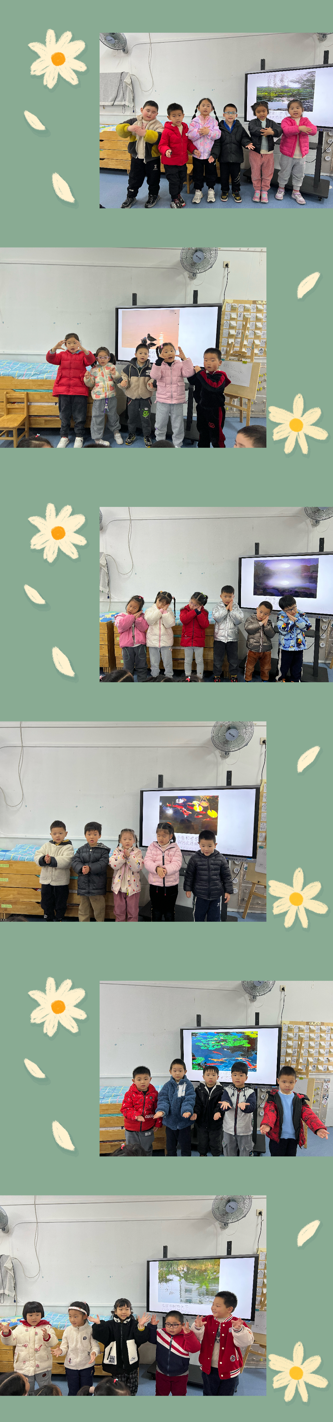 春天到了,百花齐放,小朋友们发现春天里有许多美丽的景物。公园里的小池塘也是美不胜收,本周我们班围绕小池塘开展了班本课程活动,孩子们一起聊有关池塘的话题,聊一聊池塘里有什么,一起欣赏和池塘有关的诗歌。
