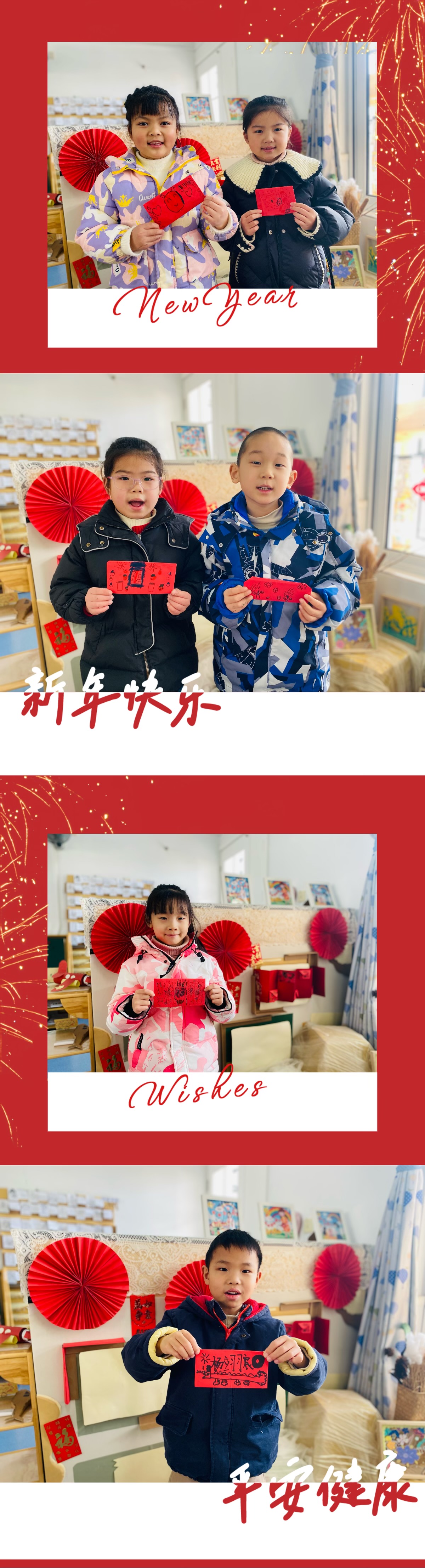 此次活动不仅帮孩子营造了一个快乐的气氛,还为他们提供了一个展示创意,增加信心的机会,使孩子们的动手操作得到了进一步的提高和发展,为新年的来临增添了浓浓的喜庆色彩,同时还让孩子们充分感受到了传统节日文化,让孩子们真正体验到了迎新年的快乐!