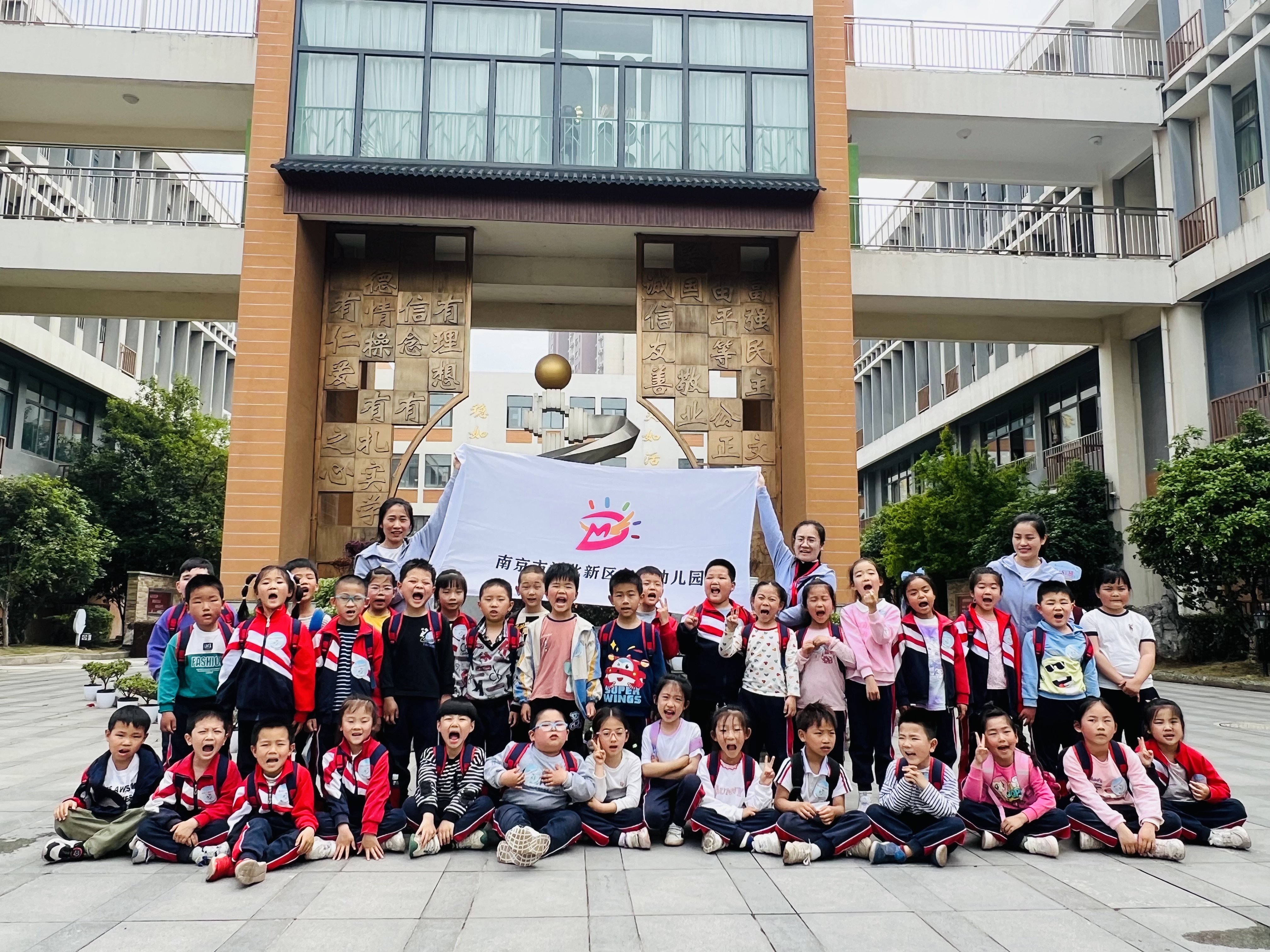 我们漫步在校园中,高大明亮的教学楼,优美整洁的校园环境,大大的足球场,让我们流连忘返。我们认真看,仔细听讲解员大姐姐的介绍,发现了很多小学和我们幼儿园不同的地方。小学的哥哥姐姐生活学习的环境真是太美了!