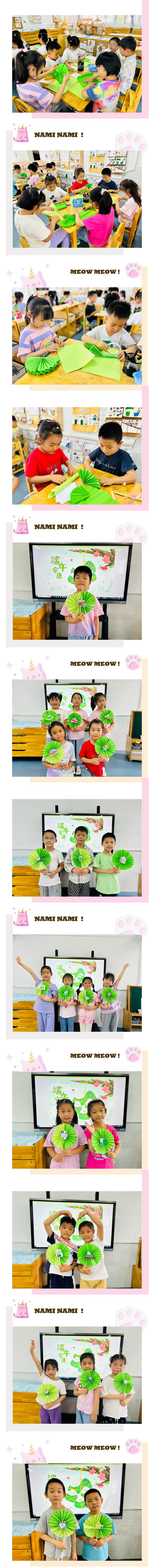 端午节亲手制作团扇,既有仪式感又能感受传统习俗的魅力。一把把团扇蕴含着小朋友们希望与家人团团圆圆过端午的期望。你瞧,一个个可爱的手工作品呈现在眼前,稚嫩又充满童趣。通过这样的活动,让孩子们感受到了端午节丰富的文化内涵,增添了节日的氛围。