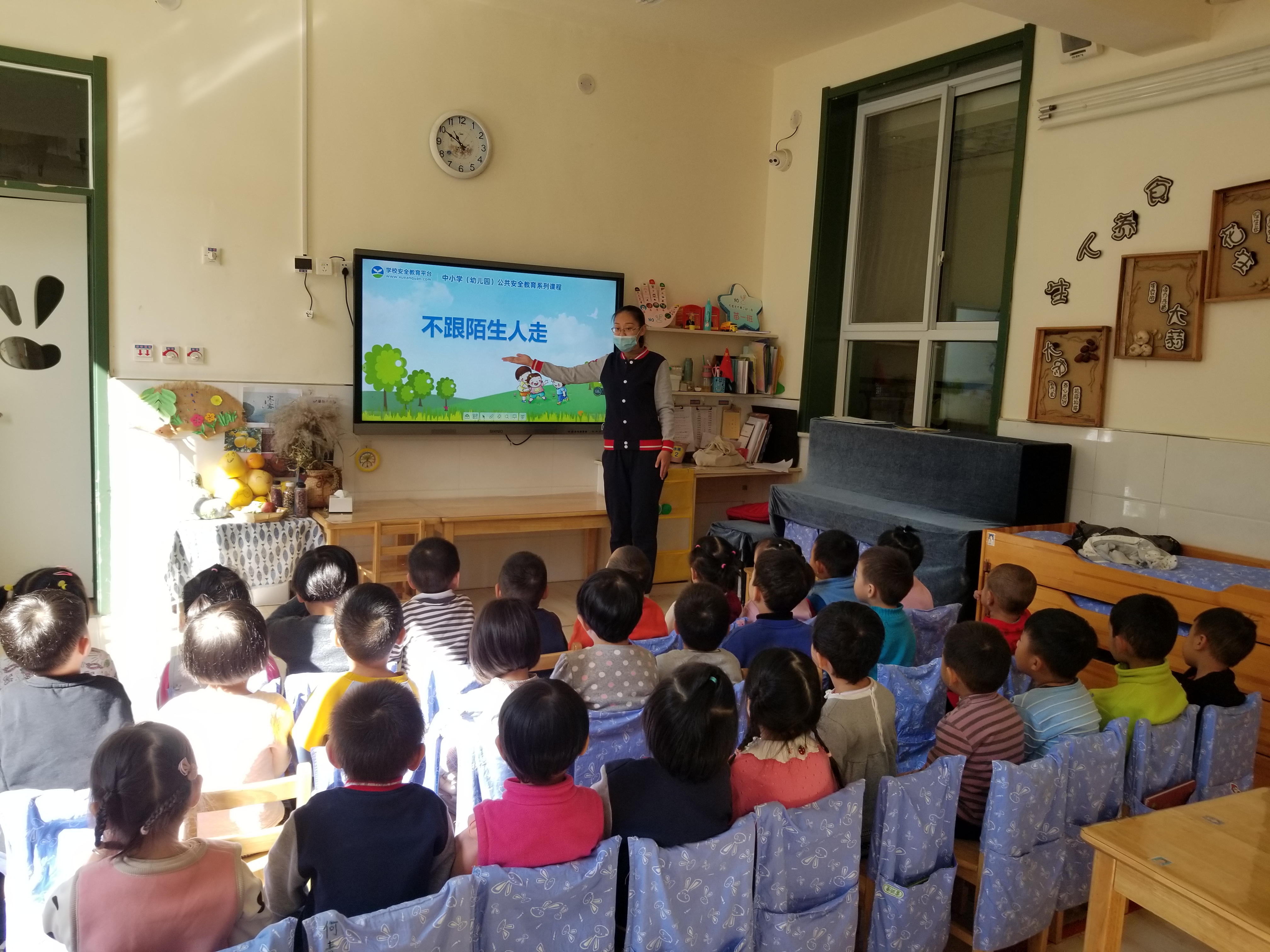 由于小班孩子年龄小,认知能力也弱,安全教育成为幼儿园教育永恒的话题,也是幼儿园长期的教育内容。为增强幼儿的安全意识,提高自我保护的能力,使幼儿掌握有关防拐骗的技能,本周我们开展了防拐骗安全教育活动——《不跟陌生人走》。