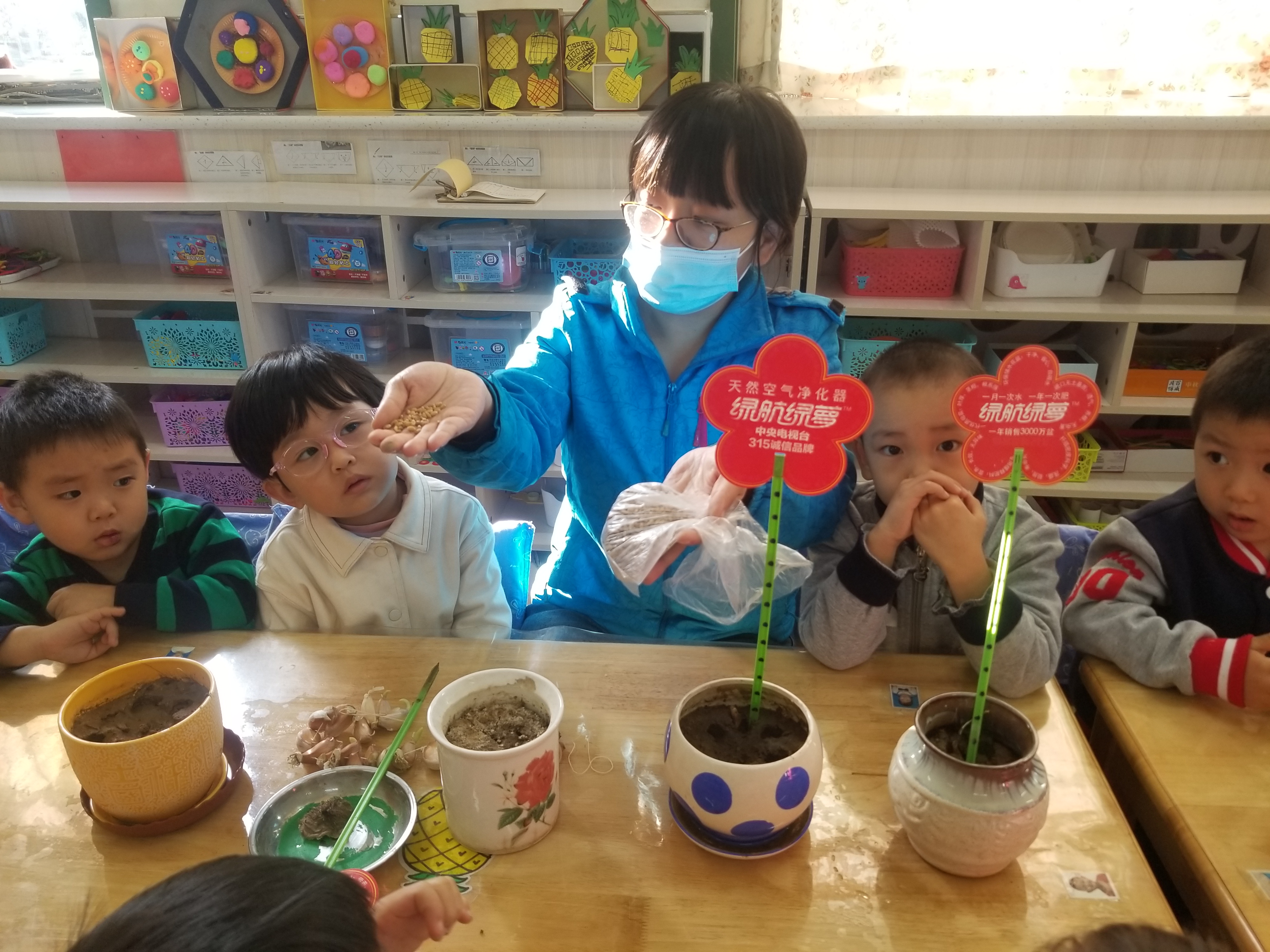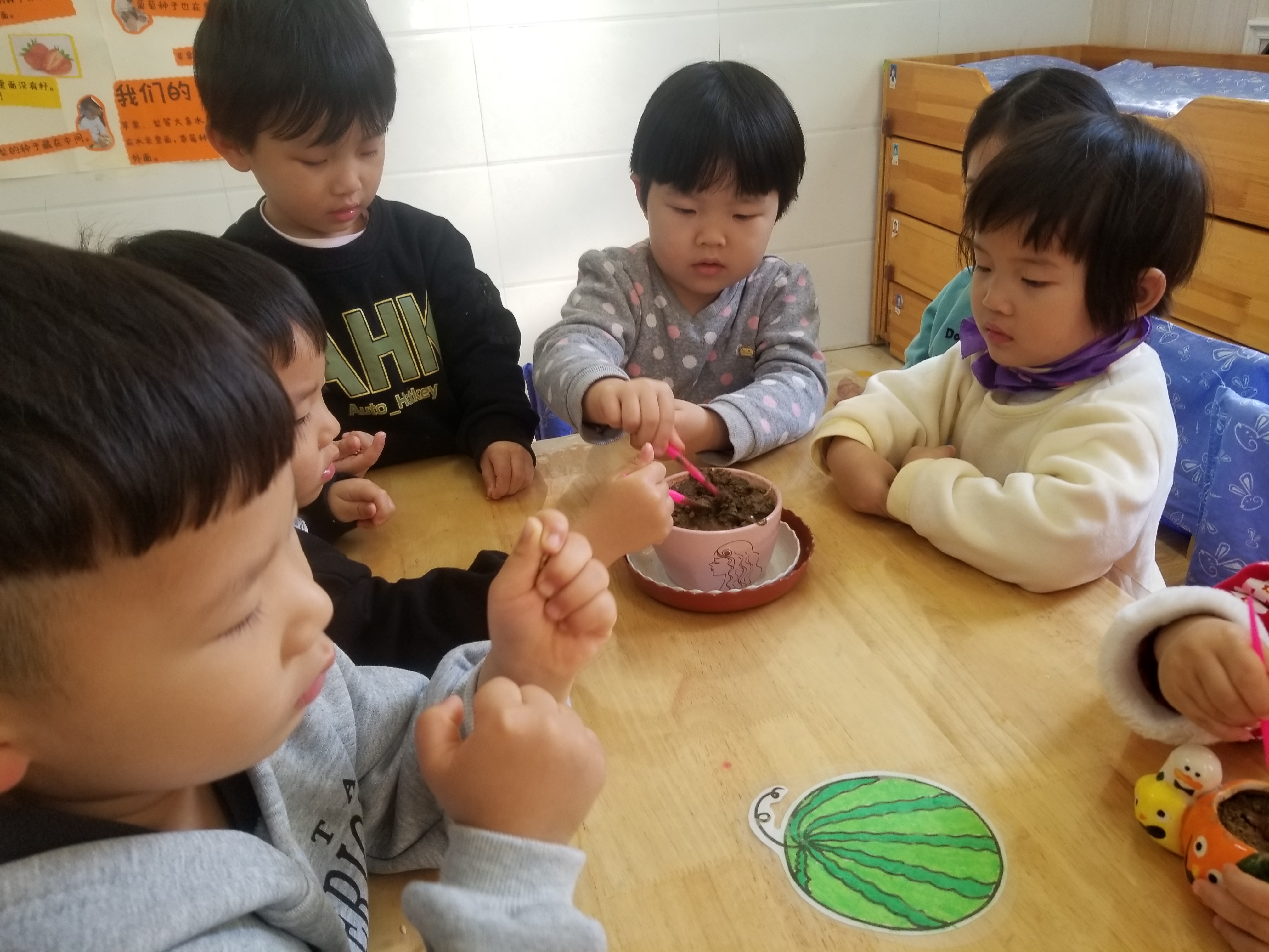 教育家陈鹤琴先生提出:“大自然,大社会都是我们的活教材,利用天然材料开展教研活动,可以让幼儿活得真实的感受。”幼儿园班级内的自然角就是孕育着多种颜色、生长的小天地,是幼儿观察、了解、探索的小窗口。为拉近自然与幼儿的距离,体验种植的乐趣,11月份开始,小班的孩子们在老师的引导下,在班内种植角开展了“我和小麦共成长”的实践活动。 麦子是一种普通的农作物,但对于幼儿来说,却是比较陌生的。小朋友们一起跟随老师,通过小故事、实物展示、经历介绍等多种方式,认识小麦、了解小麦,小朋友们发现原来小麦就在我们身边,我们吃到食物好多都是小麦粉做成的。带着这份惊奇,小朋友们更想与麦子来一次“亲密”接触,动动小手,和老师一起尝试在小花盆里种小麦。孩子们用他们稚嫩的小手种下了一颗颗种子的同时,也在他们的心田播下了一个个美好的愿望。