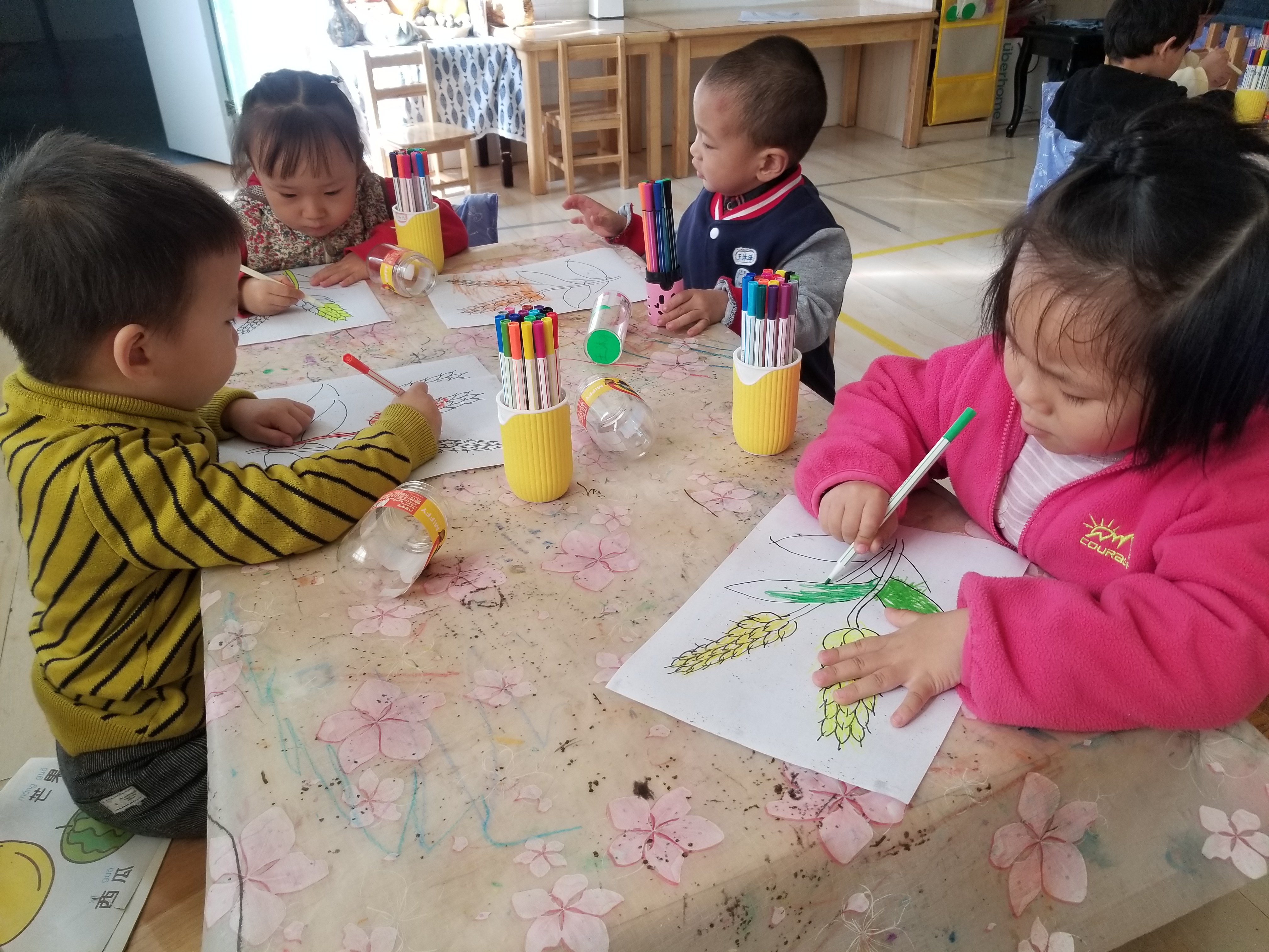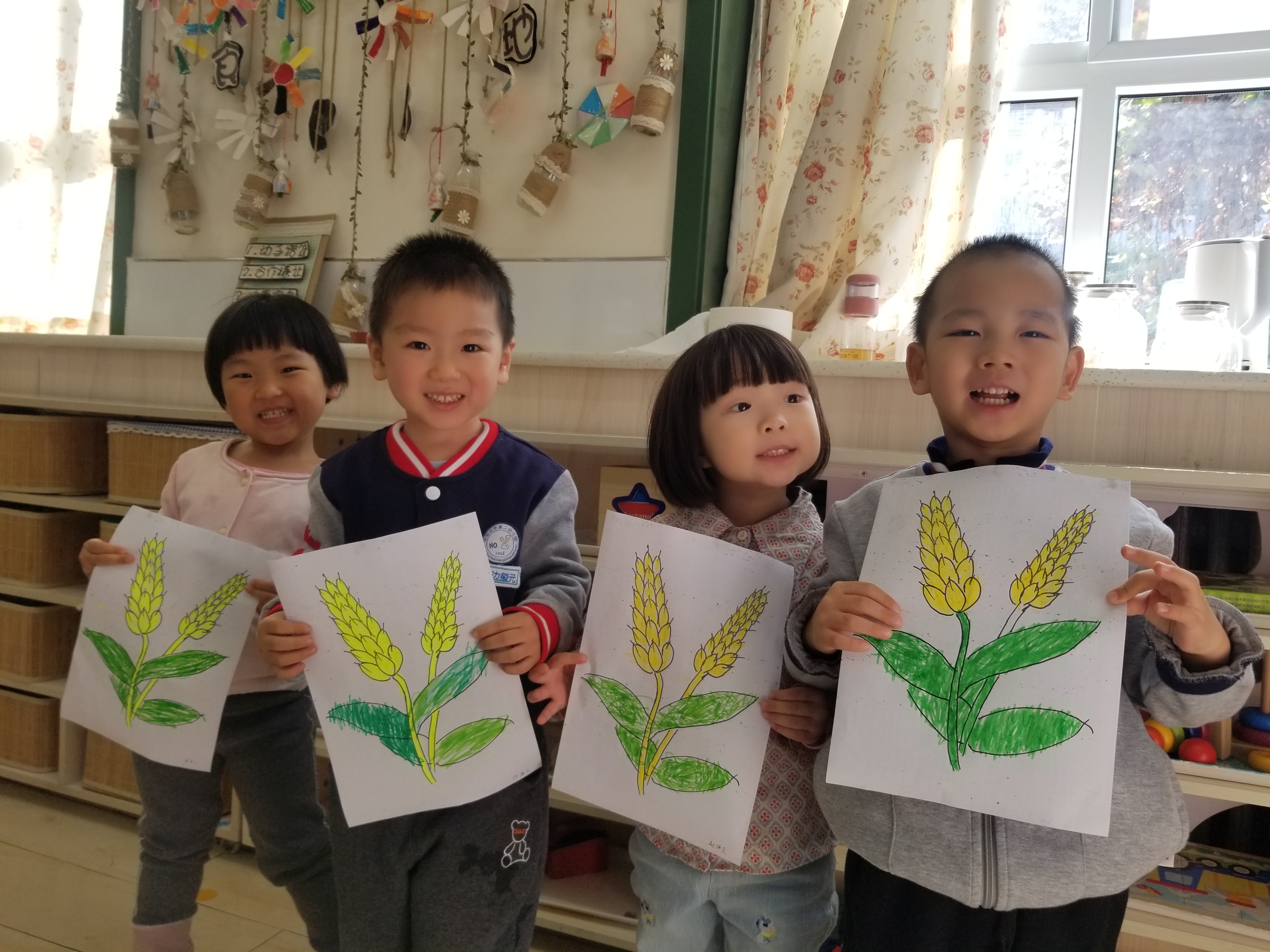 小朋友们还迫不及待地用涂色的方式,画出了小麦穗。