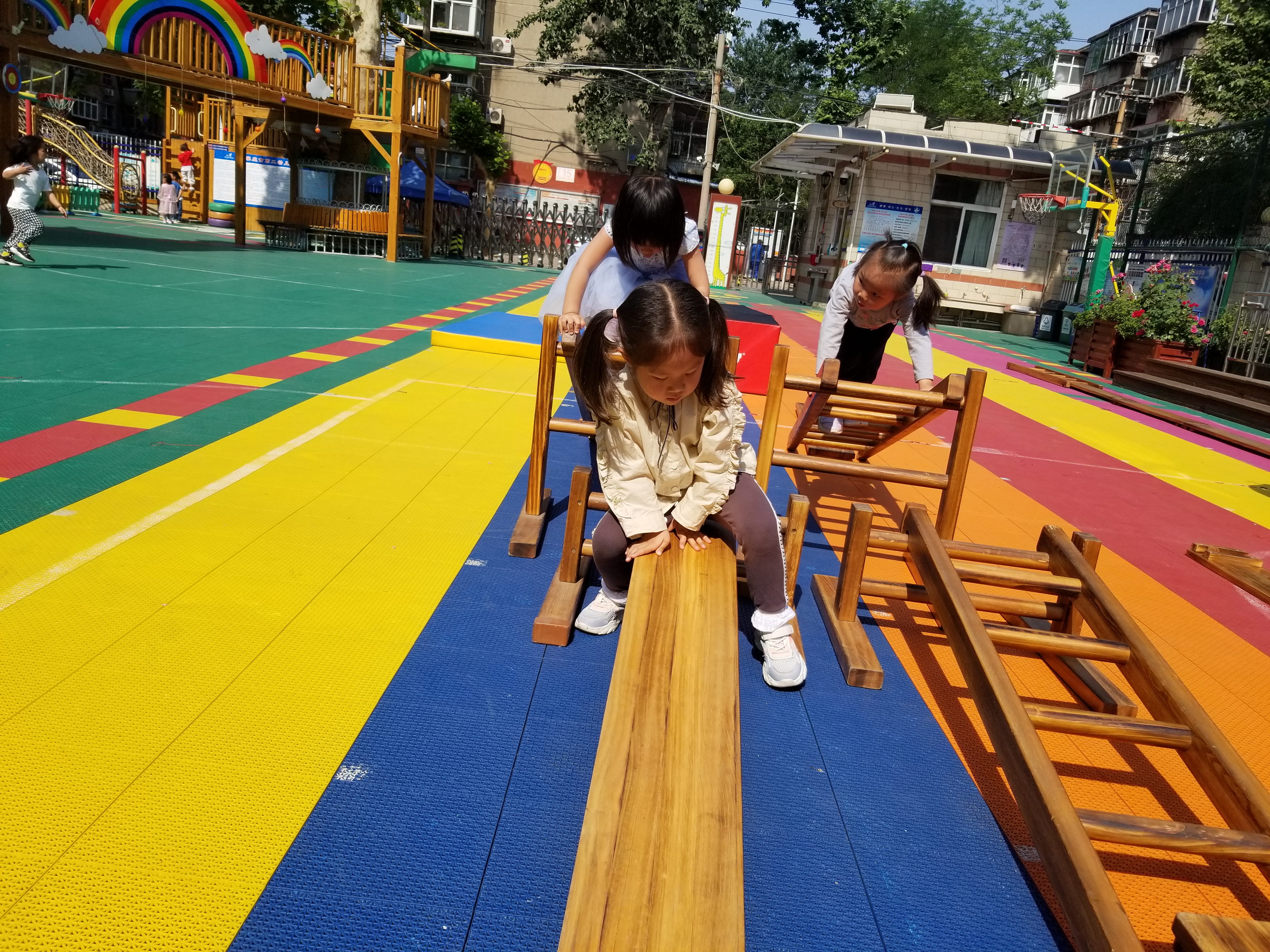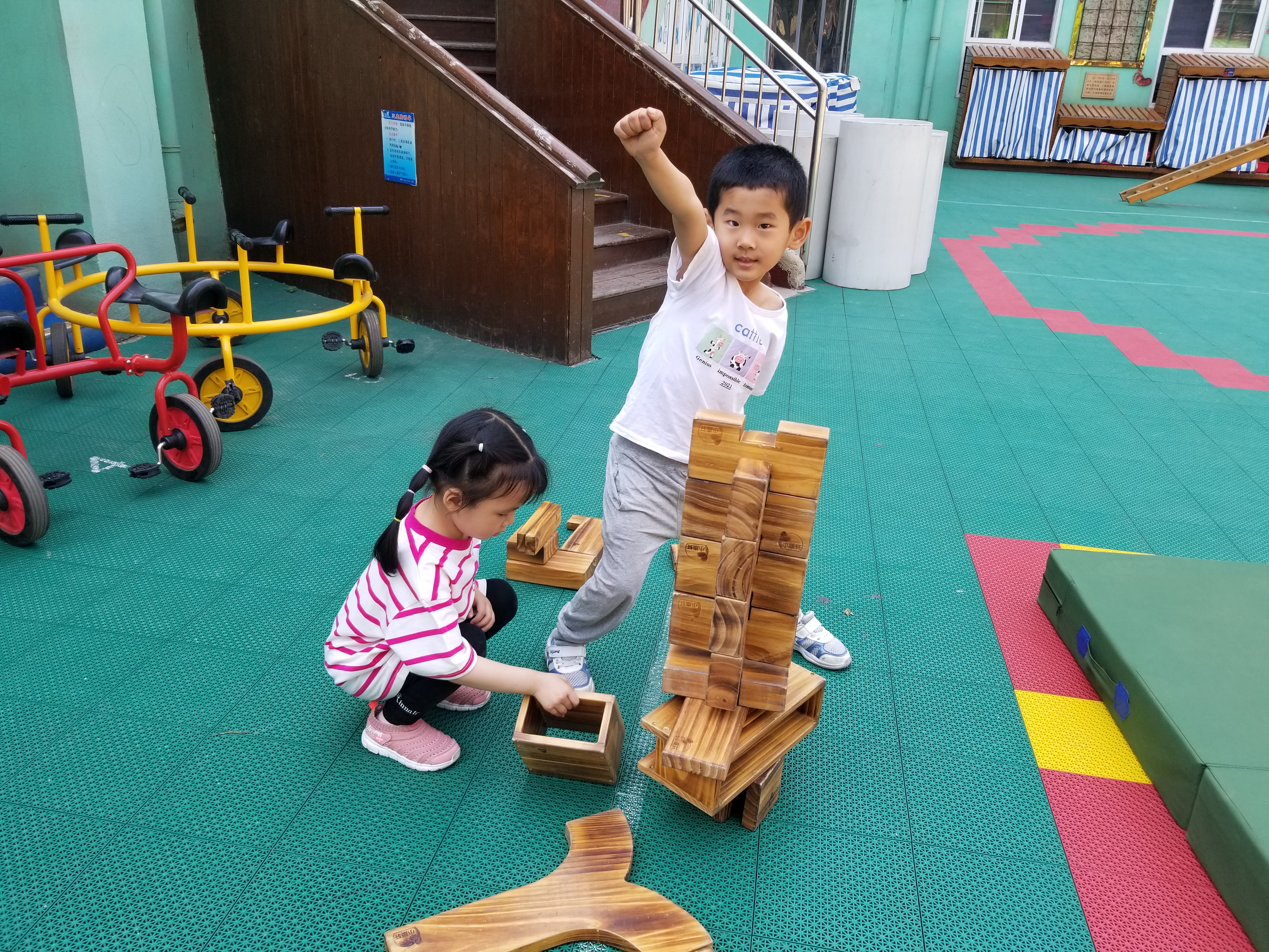 游戏是幼儿的基本权利,是幼儿生活和学习的特有方式,更是他们身体和心灵成长的内在需求。秉承着“让游戏点亮儿童生命”的信念,我们将安吉游戏带给幼儿,让幼儿在自主、自由的真游戏中,获得经验,形成想法、表达见解、不断挑战、从而挖掘自身最大的潜能。 今天上午,我们三个小班的小朋友在一起尝试了自主活动的“安吉游戏”,有的三俩合作将很重的木梯一起抬到跑道上,有的分工配合,一起努力最终搭成了一个漂亮的城堡,孩子们在自主、自由的真游戏中,获得经验,形成想法、表达见解、不断挑战、从而挖掘自身最大的潜能。 本次活动真正把游戏还给孩子,让孩子在游戏中有绝对的自主权。这样的孩子会更有创造力,也更主动,他们能够从游戏中学会合作、关爱并借由心理上的冒险实现思维上的突破,让我们一起竭尽全力,让每一个孩子都拥有幸福、快乐的童年!