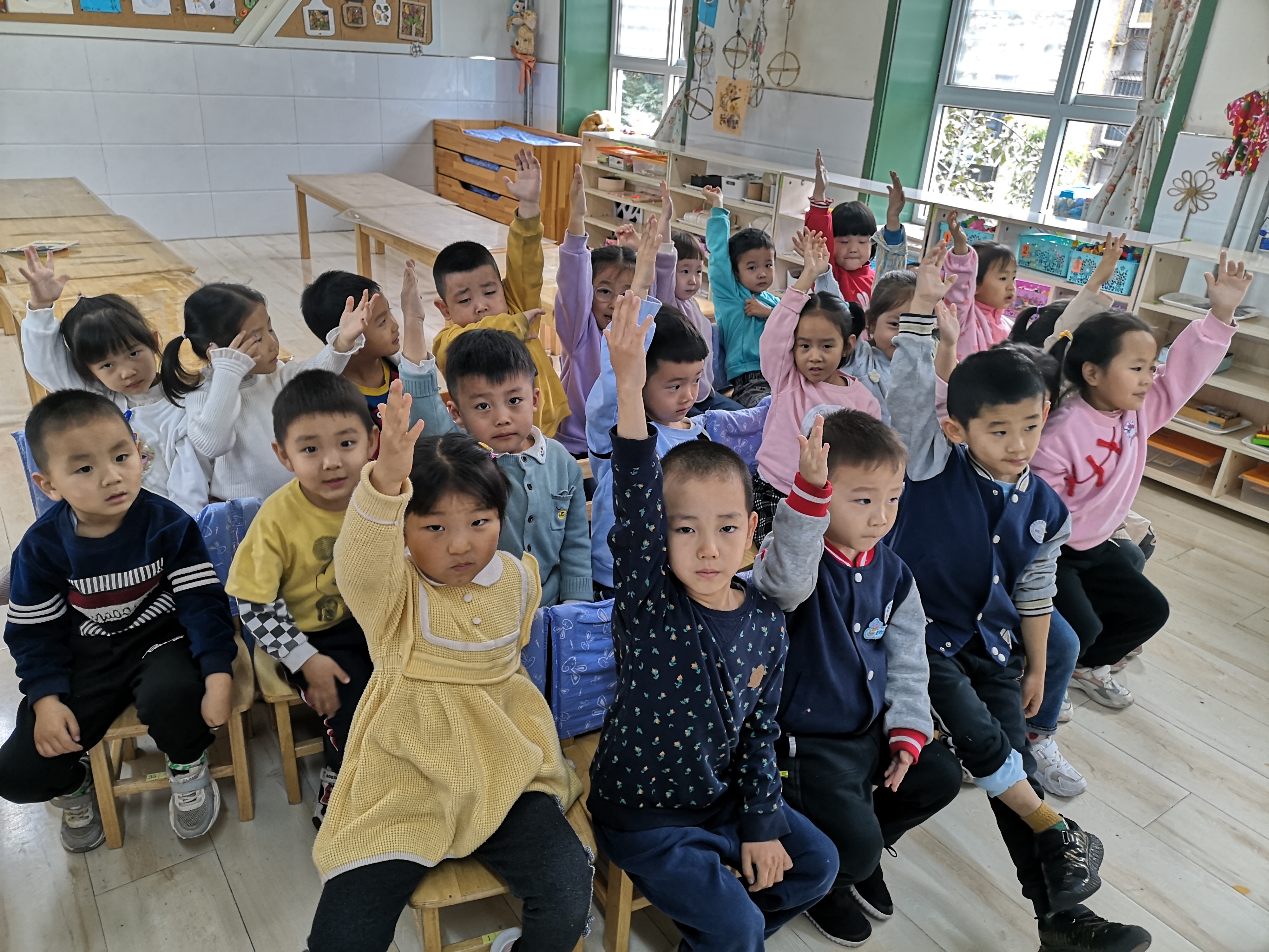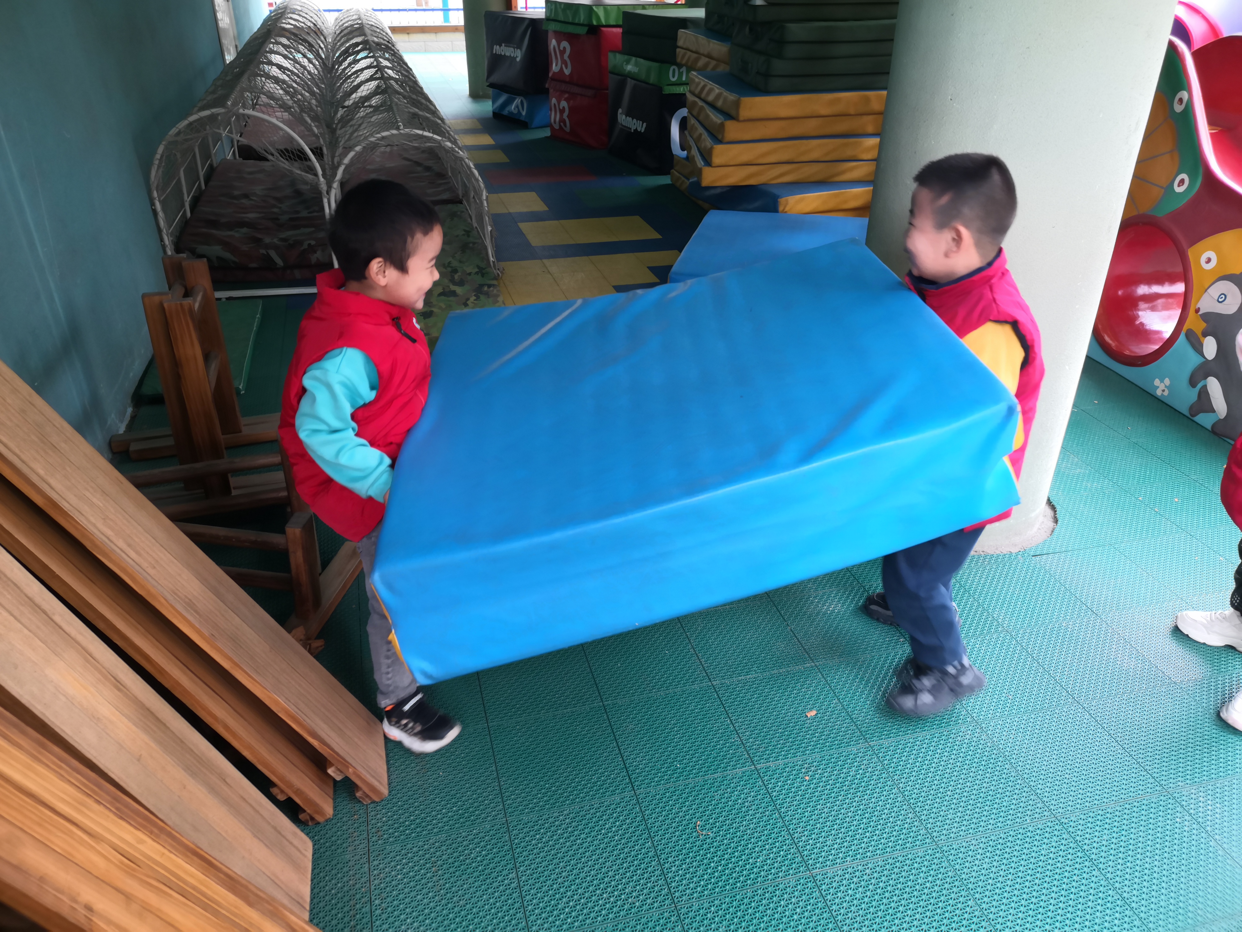 孩子们期待已久的秋季运动会终于要开幕了,俗话说,"生命在于运动",只有拥有了一个强健的身体,我们才能更好的开展各项活动。同时户外大型器械区的探索搭建活动持续进行中,帮助小朋友们熟悉各种器械,加强体育锻炼。可是孩子们在搬运中对危险事物或行为的认识与判断能力有限,还具有爱探索、爱冒险的年龄特点,因此,我们进行了一节安全课——我是安全器械员。 小朋友们先在老师的带领下熟悉了本次运动会的各个项目和玩法,报名选择了自己愿意尝试的项目。说到需要招募摆放材料的器械员,小朋友们跃跃欲试,热烈地讨论着器械的搬运方法,纷纷表达自己的想法。例如:垫子不能好多人一起搬,要不然容易翻倒,可以像搬桌子一样两个人一前一后抬走;大跳台有提手,要拉着提手走;跨栏有“腿”突出来,不能拿着甩……对运动会小朋友们也跃跃欲试,在安全课后我们根据讨论结果,试着自己搬运器械,开始运动会的练习。 运动是快乐的,运动是有收获的!有规则、有秩序的开展运动,不仅保护了孩子们的安全,也让孩子们在运动中有更好的成长。