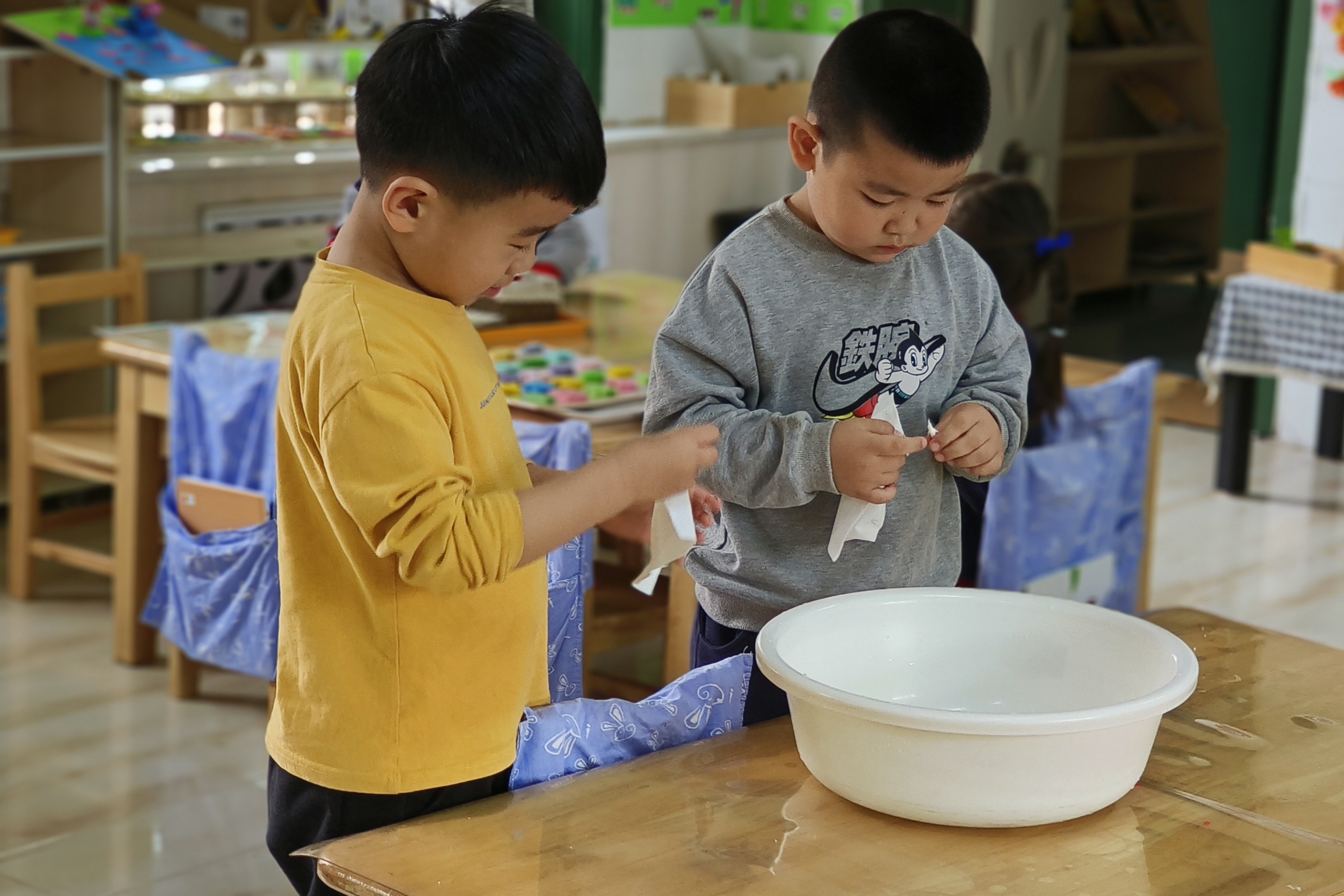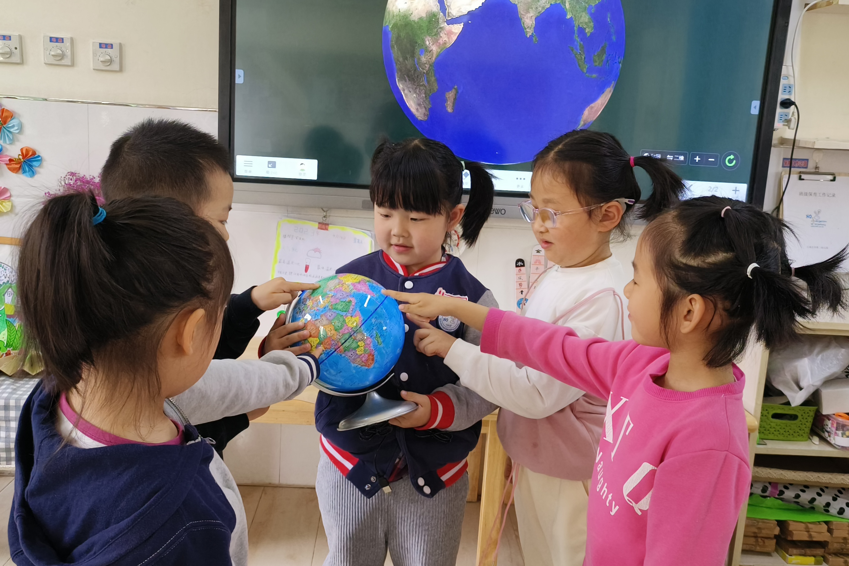 每年的4月22日是世界地球日,这是一项世界性的环境保护活动。今年是第54个“世界地球日”,今年地球日的主题是“众生的地球”。为了增强孩子们对大自然和人类社会的热爱,激发孩子热爱地球、保护环境的意识,我们班开展了关于世界地球日系列活动。 首先是认识我们的家园——地球,地球是什么样子呢?带着这个问题,通过观察地球仪我们了解到了地球的地形、地貌特点,接着为了更好激发孩子们珍惜资源,保护环境的意识,我们利用区域时间开展了“古法造纸”,将废旧的纸撕成一片片,经过撕纸、制浆、抄纸、装饰、晾晒、揭纸等过程,一张简易的纸就做出来了,通过这些活动,我们了解到从树到纸,要经过很多工序,要耗费大量的木材,也需要付出大量的劳动。如果每人每天浪费一张纸,一年则需要砍伐四棵生长了二十几年的大树,那将多么影响生态环境。孩子们都纷纷表示一定要节约用纸,保护我们的地球妈妈。 愿我们一起行动起来,共建美好家园。