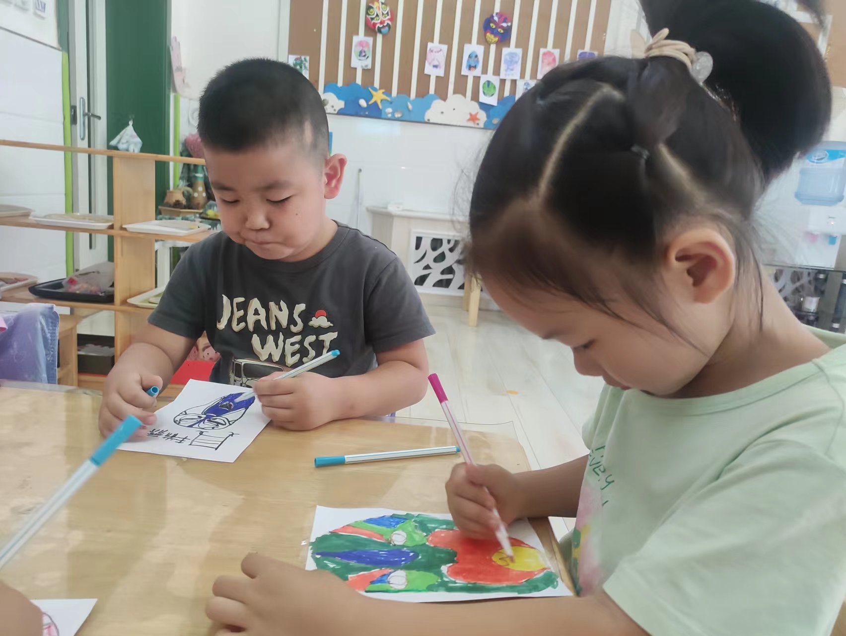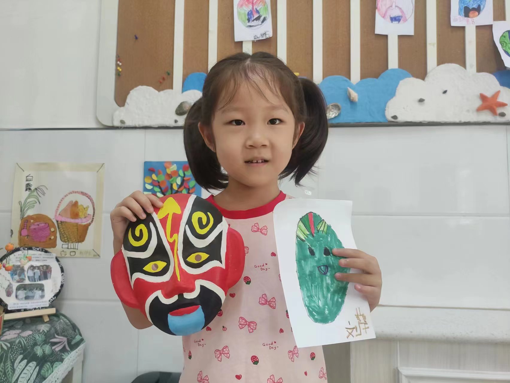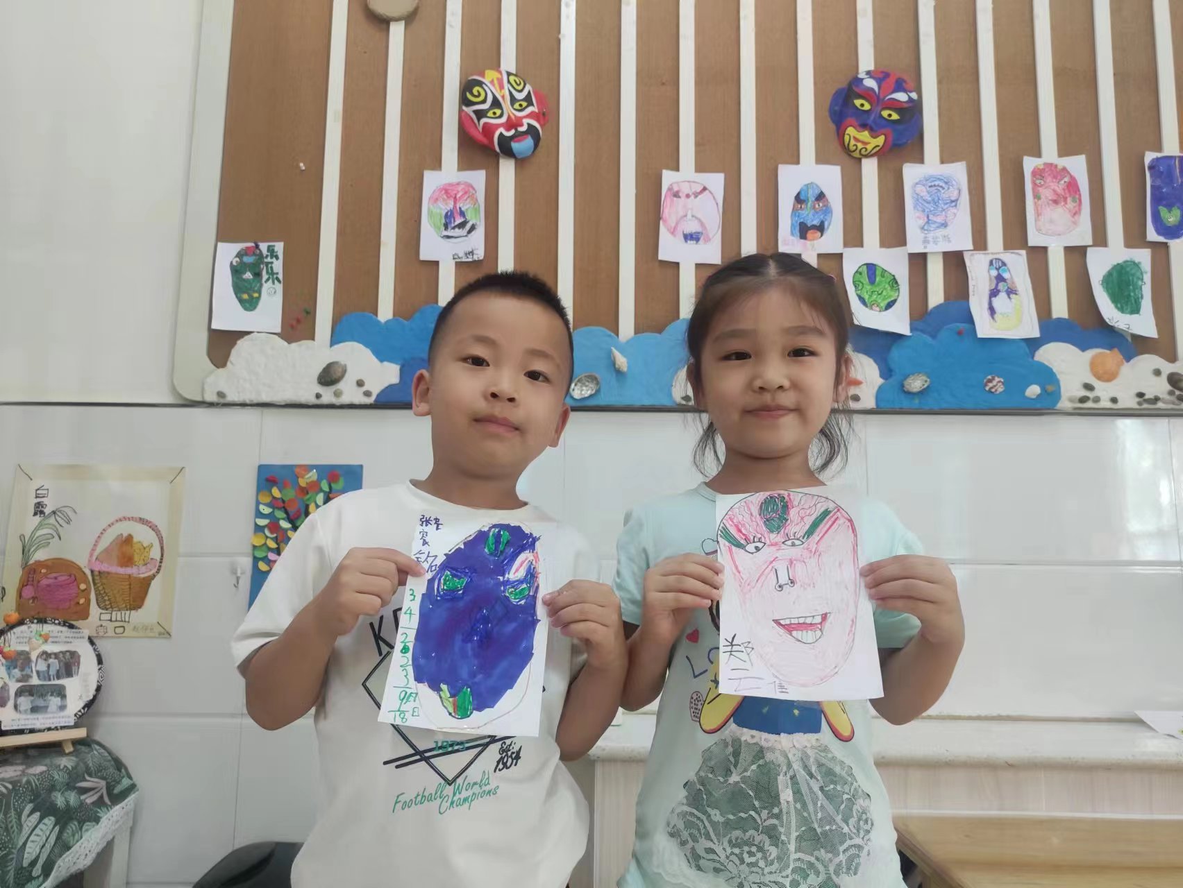 京剧是我国传统的国粹艺术,至今已有200多年历史。为了传承中国传统文化,使幼儿对京剧艺术有所了解,在国庆节即将到来之际,团团班开展了“绘脸谱,迎国庆”主题活动。 教师展示的一张张脸谱吸引了孩子的注意力,在一张张脸谱不停地变换中,宝贝们被脸谱鲜艳强烈的色彩深深吸引,“哇,好厉害啊”“哇,好漂亮呀”一阵阵赞美声不停地传来。宝贝们慢慢知道了蓝脸的窦尔敦、红脸的关公、白脸的曹操、花脸的美猴王......接下来画脸谱环节宝贝们迫不及待的想试试,一个个俨然小画家的模样,画线条,选色彩,装饰造型.... 活动后,将幼儿自制的京剧脸谱呈现在主题墙上,孩子们看着自己制作的京剧脸谱,自豪感油然而生,顺利推进“爱祖国,爱家乡”主题内容的开展,同时也了解到每年的10月1日是我们祖国的生日,我们要为祖国庆祝生日。进一步激发幼儿的民族自豪感和使命感,感受到我们身体里流淌着华夏的传统与文化的血液,激发孩子们喜爱京剧、热爱祖国的情感。 |