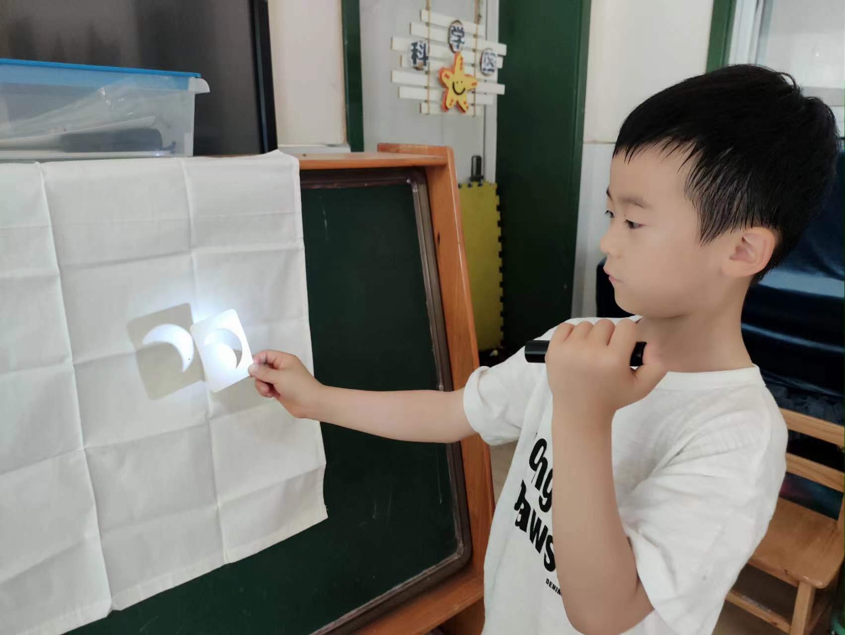 影子是我们生活中司空见惯的现象,同时也一直是孩子们感兴趣的话题。《纲要》指出:教师要善于发现幼儿感兴趣的事物、游戏和偶发事件所隐含的教育价值,把握时机,积极引导,于是我们开启了关于影子朋友的探索之旅。 小朋友们户外活动后对“影子”话题回味无穷:影子是怎么来的呢?为什么会有影子?所以我们开始了第一个板块——探索影子的秘密 孩子们首先通过实地观察和亲身体验了各种影子现象,家里、幼儿园里、路灯下、太阳下……到处都看到观察影子的小朋友,他们在观察中进一步丰富了自己的已有知识,对影子的形成有了更为直观的认识。 在团团班的科学区,小朋友们自己进行了实验,他们带来了手电筒,用身边的物品来实验,最后总结出了“影子”产生的原因:光是沿着直线传播的,当光线遇到不透明的物体时,光线会被阻挡,而在物体的另一侧则会形成相对较暗的区域,这就是我们所说的影子。 影子会变吗?在探索影子的产生时,小朋友们发现影子总是变来变去的,这是怎么回事呢?小朋友们用手电筒和卡片开始了实验。在手电筒不停地移动改变下,孩子们发现了影子会跟着光的位置变化而变化。光离物体近,影子就大;光离物体远,影子就小。孩子们还惊奇地发现,影子除了有位置的变化,还有长短也发生了变化。影子为什么有时候影子很长,有时候影子很短呢?我们一起在早上、中午、下午三个时间段来观察影子的长短并找来各种测量工具对影子的长度进行测量。经过测量,孩子们发现在不同时间段的影子,长度是不一样的。 那有没有彩色的影子呢?孩子们开始了寻找,彩色钻石、塑料瓶子、胶带、风车……普通平凡的物品里也有美丽的光影。每一张都像是一个小小的艺术品。这些为什么能照出彩色影子?我们自己能做出来吗?在美工区里,孩子们挑选了好多材料,开始了实验:纸太厚,不行;光不亮,不行;丙烯马克笔太厚,也不行。在一次次实验后,孩子们选择了透明膜,在透明膜上用普通的水彩笔绘画,最后照出了独一无二的彩色影子。 在了解了影子的特征和秘密之后,他们更是把影子当作了自己的朋友。他们和影子一起玩耍,一起做游戏,享受着快乐的时光,让我们一起看看他们之间发生了哪些好玩的事情吧。 “影子”是一个探索性较强、趣味性较高的科学探究活动,孩子们从发现影子到探究影子,再到去和影子做游戏,形成了一条探究的主线,同时也满足孩子们亲近自然的天性。在活动中,幼儿感受着寻影、探影、玩影的快乐,在探索中发现光与影的秘密,体验光与影的神奇。 |
